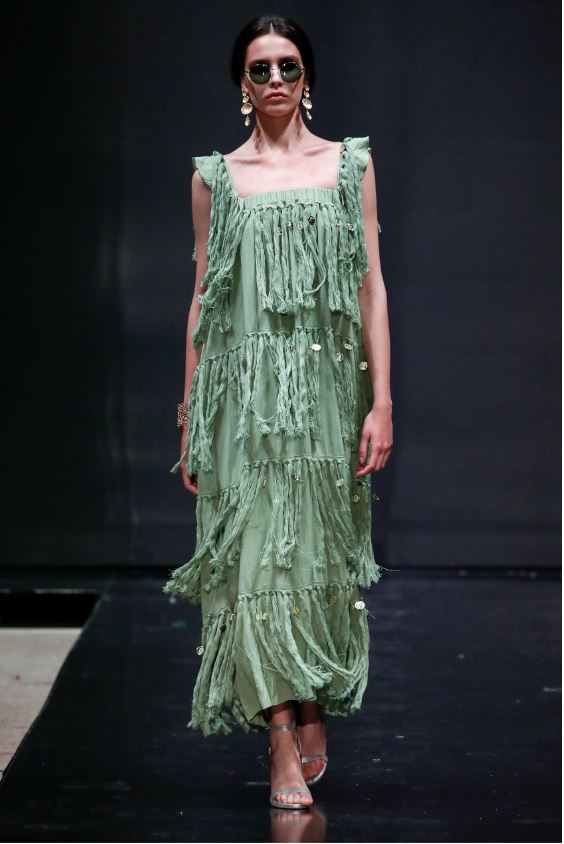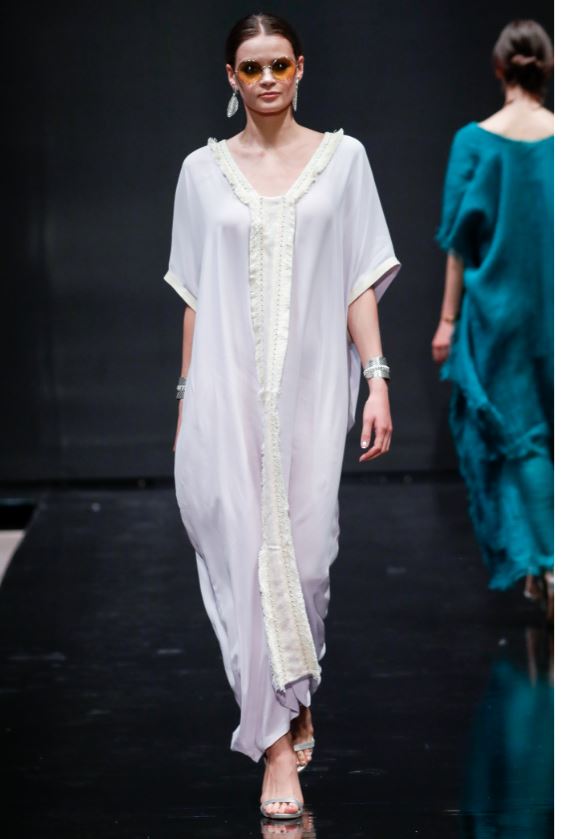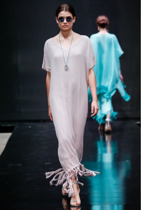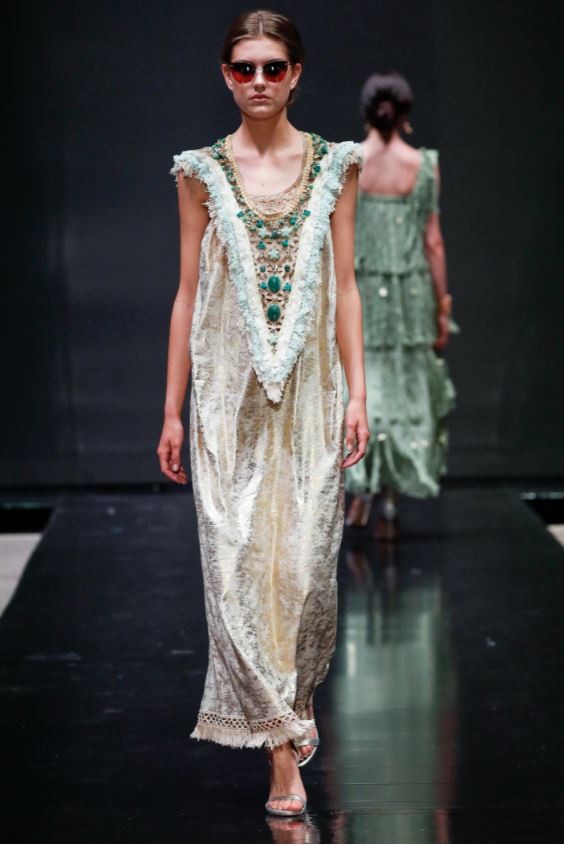 La palette dei colori è disegnata da taupe, beige, cipria, crema, oliva e azzurro. La sensazione calda e rilassata che trasmettono le creazioni di Glidah è la chiave giusta per accendere il mood vacanziero, pur mantenendosi elegante e classy.A completare i raffinati look estivi sono i gioielli della jewelry designer romana Giulia Barela.