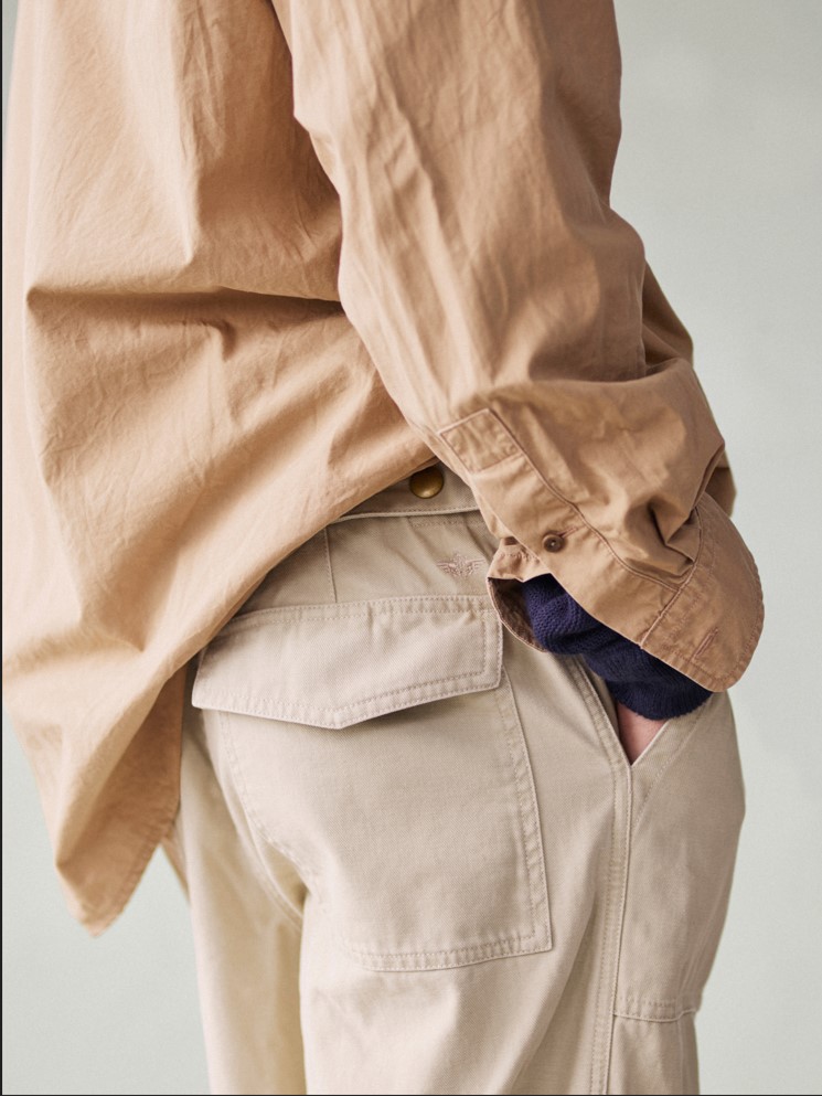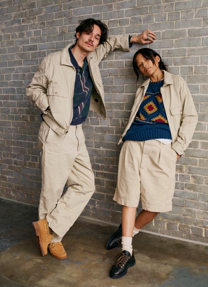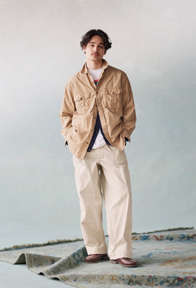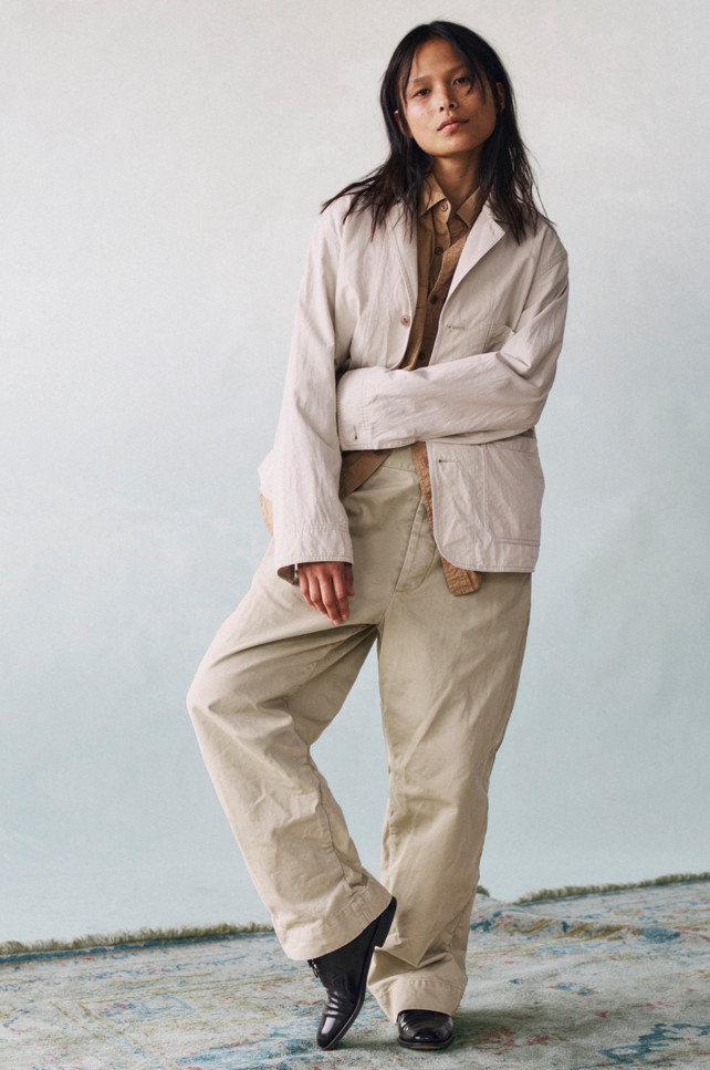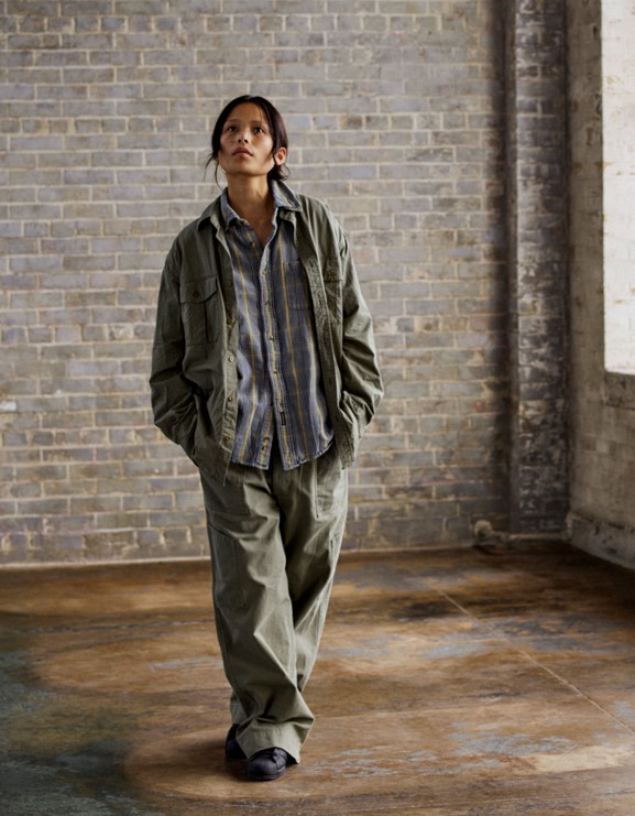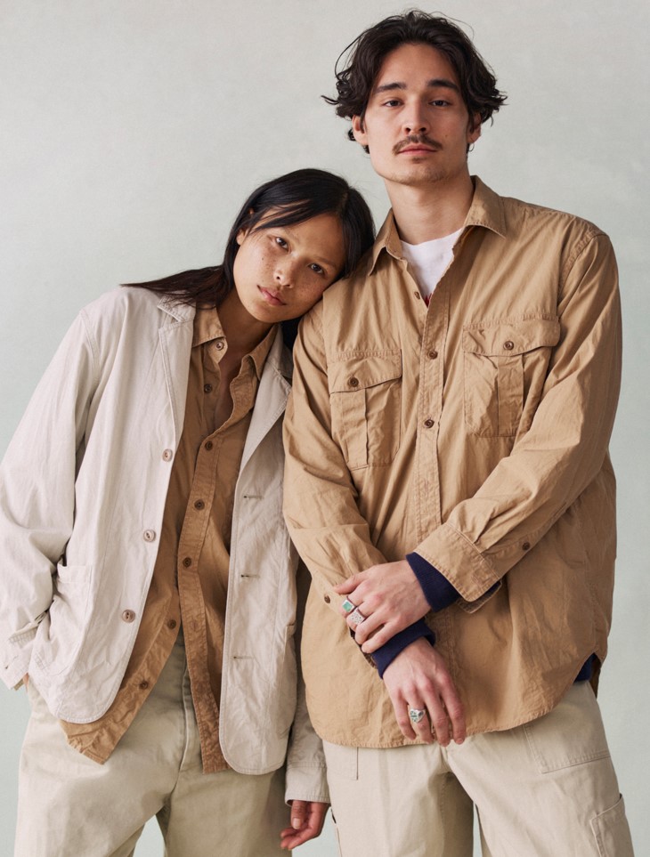 Sebbene l’intera capsule sia ispirata alle origini militari del khaki, tutti i capi sono ‘aggiornati’ con tessuti e tecniche di costruzione giapponesi di prima qualità, oltre che con tagli e interpretazioni contemporanei, allo scopo di mostrare la ricca storia del khaki e marcando al contempo il suo posto unico nel campo della moda come tela elegante e resistente per l’espressione di sé.