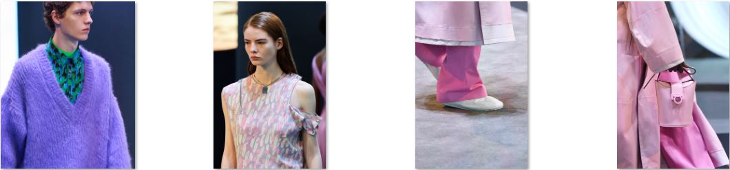 Nel ready-to-wear gli elementi sartoriali si fondono ai codici estetici dell’abbigliamento militare esportivo. Camicie, maglie in mohair, calzature e accessori sono connessi e complementari tra l’uomo e la donna e declinati in tinte monocromatiche accostate a esplosioni di colori.