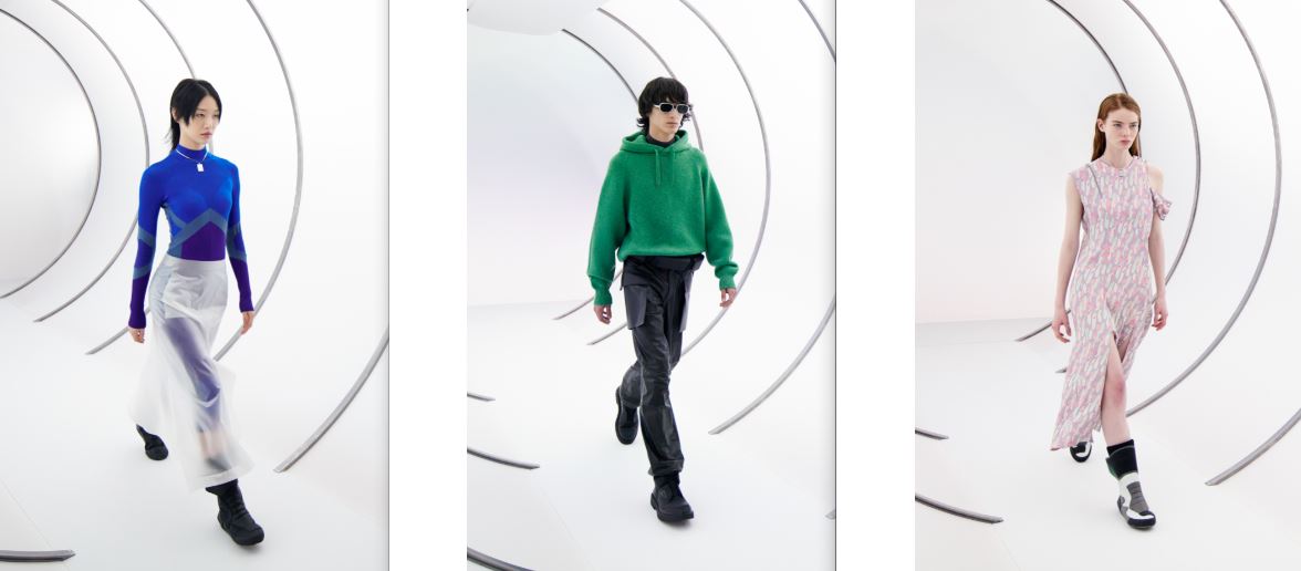Tra le novità: mantelle, cappotti e parka in pelli termotrattate e in lana, finissima maglieria tecnica, body e abiti in maglia arricchiti da un motivo camouflage astratto. Utility parka e tailoring destrutturato, capi con lavorazione fil coupé effetto frangia, abiti in jersey drappeggiati e inmaglia metallica, signature della collezione.