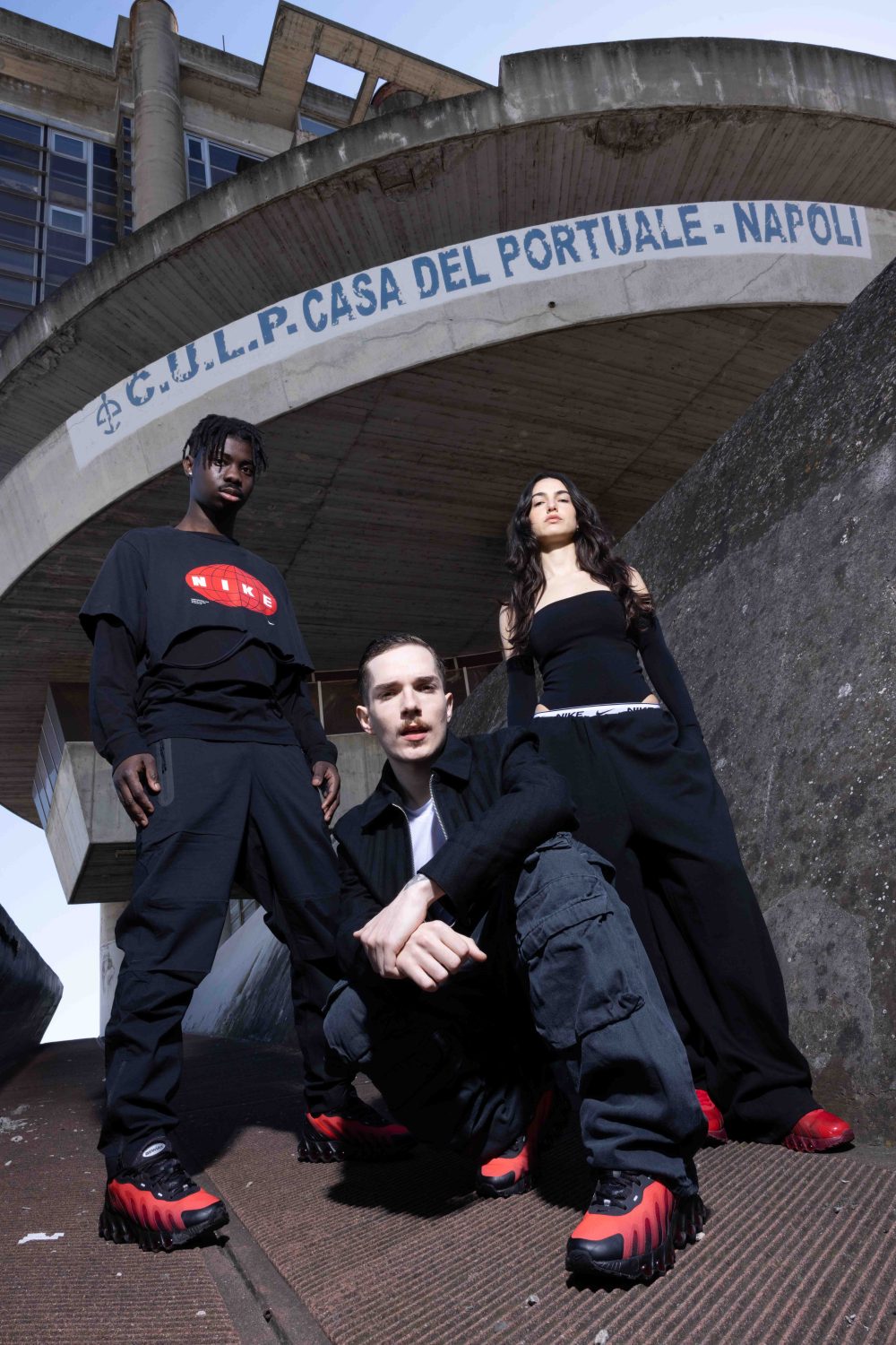 La campagna per la Nike Air Max DN8 è ambientata in alcune delle aree più iconiche di Napoli, dove le architetture brutaliste e moderne interagiscono con il paesaggio urbano storico. Le immagini della campagna, realizzate dal fotografo Antonio De Masi e dal videomaker Johnny Dama, mettono in luce il contrasto visivo tra le strutture in cemento grezzo della città e la modernità rappresentata dalla nuova Air Max DN8. Il design della sneaker, che integra la tecnologia Dynamic Air, è accompagnato da un’estetica che si ispira all’architettura e alla cultura urbana di Napoli.