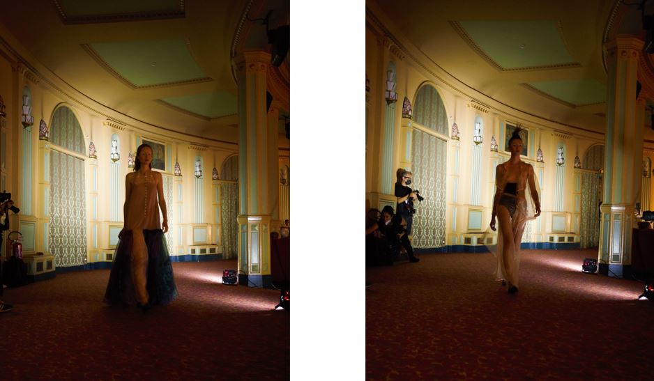 Per quanto riguarda la sfilata, Liberatore ha rivelato di aver voluto lavorare molto su un sincrono tra quello che avveniva live con le modelle, sound e riproduzione su grande schermo lateralmente al cinema. I video rimandavano ad ambientazioni dentro la chiesa di San Michele a Ferrara, dove sono esposte le opere del padre della stilista, Bruno Liberatore.