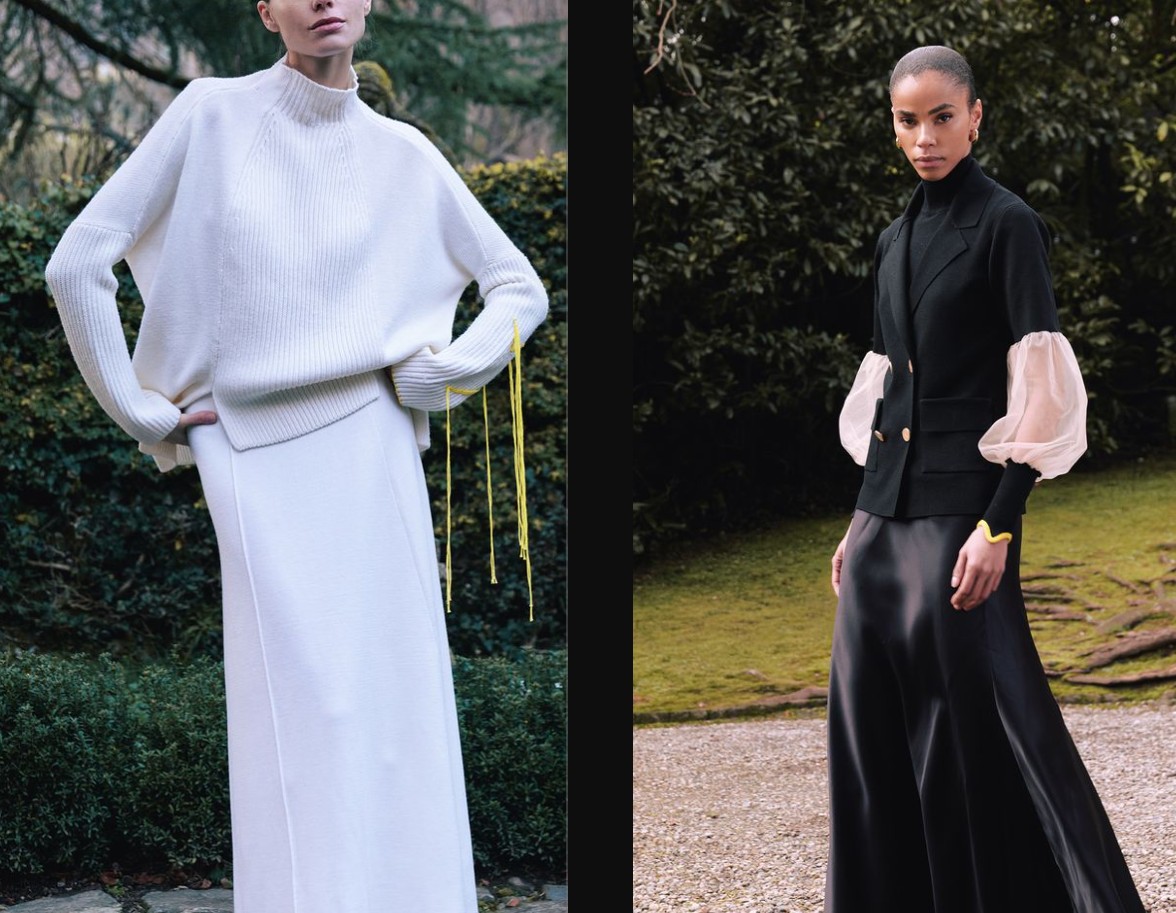 Per la collezione autunno-inverno 2025-26 Gensami esplora nuovi volumi che ridefiniscono la silhouette femminile con grazia e originalità. La stagione si caratterizza per maglioni in cashmere arricchiti da balze eleganti e gonne ampie, capi pensati per chi ama uno stile che coniuga comfort ed estetica.