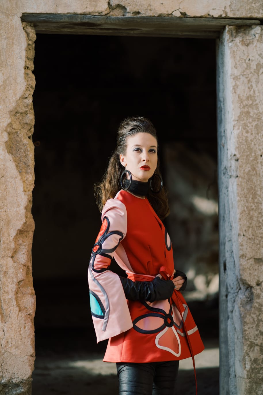 Come si traduce questa neo-filosofia post-pandemica in moda? Con delle applicazioni raffinate su raso che impreziosiscono linee disegnate addosso, con una prevalenza di rossi sanguigni e accesi che ne evidenziano la vitalità. E con una maestria nel cucire le applicazioni su giacche e completi fascianti di elegante seta.