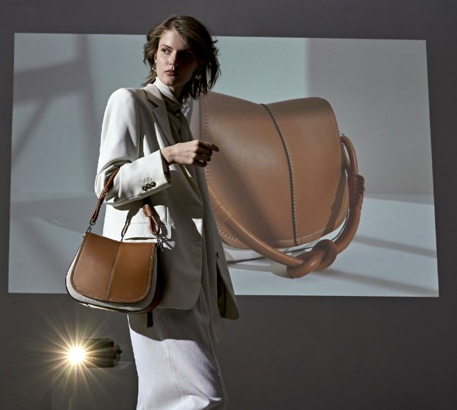 Una mise-en-scène lineare, di cui le borse della nuova stagione Spring/Summer 2021 sono i punti luce, le protagoniste assolute capaci di celebrare un’eleganza senza tempo che cuce insieme tradizione e design contemporaneo. A fare da scenario a questo racconto, un’ideale Galleria d’Arte in cui ha luogo una vera e propria performance di arte contemporanea: grazie alla tecnica della videoproiezione, le borse si raddoppiano, si riflettono sulle pareti dando vita ad un immaginario estetico fatto di luci, ombre, contrapposizioni e texture evocative.