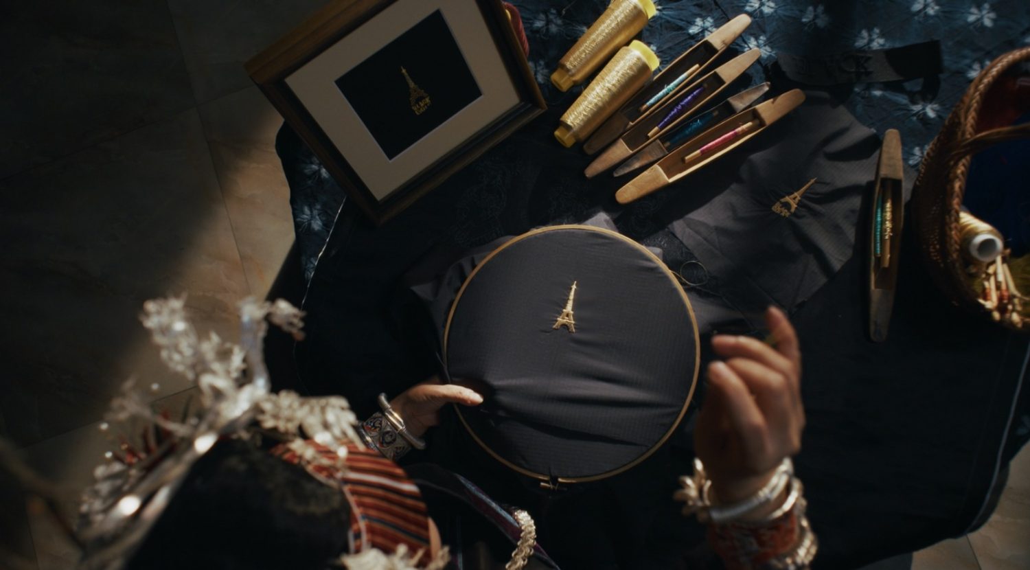 La collezione si distingue per l’uso della tecnica del “broken-thread embroidery”, che conferisce ai capi un effetto tridimensionale, creando una profondità visiva unica. I design presentano simboli rappresentativi delle due culture: il dragone cinese e la silhouette della Torre Eiffel.