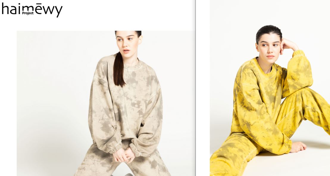 haimēwy Project fa proprio un nuovo concetto di lusso legato alla possibilità di lavorare, di produrre e di vivere in spazi e ambientazioni che possano garantirci una migliore qualità della vita. Un lifestyle fatto di ritmi sostenibili, pause green e bagni di luce solare. Ciascun capo della collezione estiva 2021 è realizzato in tessuto felpato 100% cotone.