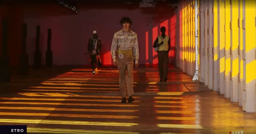 Etro ha sceneggiato la sfilata con particolare cura alle luci. Il set di una location post-industriale sembrava sospeso in un eterno tramonto dai colori caldi. Nonostante la sala fosse vuota nelle immagini, sembrava popolata da tante idee affollatissime.