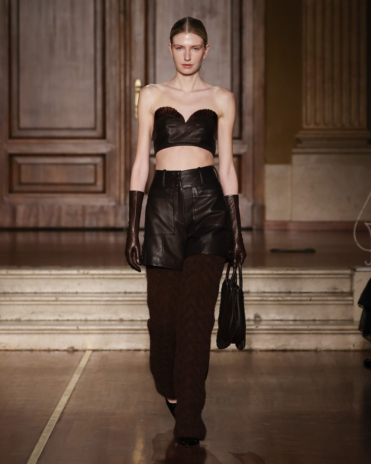 La collezione comprende abiti, capispalla, gonne, pantaloni e shorts, caratterizzati da vibranti colori che spaziano dal fucsia al rosso, dall’arancione al senape e alle varie tonalità del lilla. Gli accessori, tra cui borse plissé in pelle di vitello e guanti, sciarpe e cappelli in lana alpaca, completano l’ensemble, enfatizzando l’artigianalità e la ricchezza culturale del Perù.