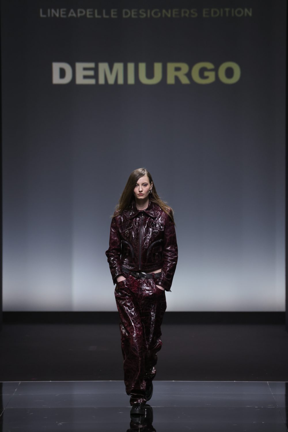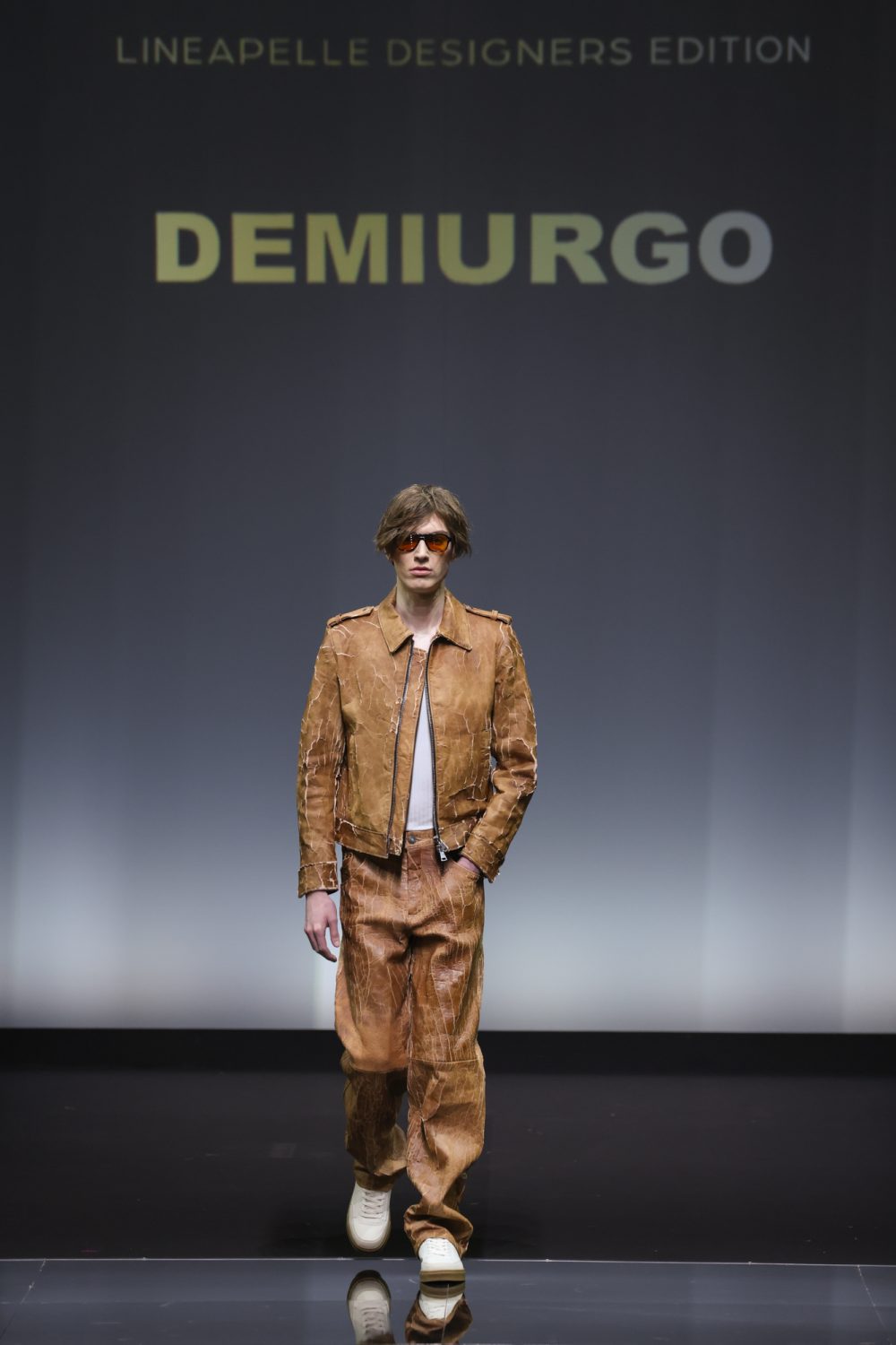 A Lineapelle Designers Edition 2025 DEMIURGO ha fatto sfilare la collezione “Timeo”, bellezza stilistica che nasce dall’incontro tra innovazione, autenticità e avanguardia. Ispirata dal concetto del Demiurgo, celebra l’unicità della pelle, trasformata in protagonista assoluta. Ogni capo prende vita attraverso un processo creativo che plasma la