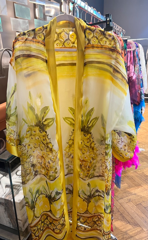 Seta, cotone e viscosa si intrecciano in creazioni leggere e sensuali, che scivolano sul corpo come una brezza estiva. Le tonalità evocano i riflessi del mare, il bianco delle scogliere, il giallo del sole e il blu profondo delle notti siciliane. I caftani, con i loro volumi morbidi e i dettagli ricercati, richiamano anche l’anima araba dell’isola: un’eredità culturale fatta di geometrie raffinate e suggestioni esotiche che dialogano con la luce del Sud.