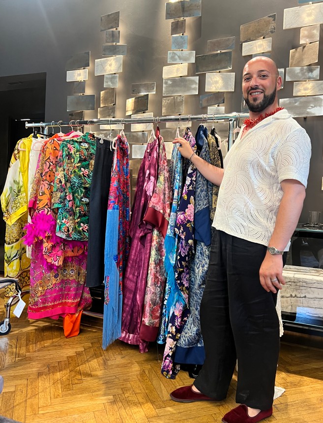 JLAdore Couture nome del brand di Gianluca Lo Paro, originario di Palermo, ci parla del Barocco siciliano rivisitato in chiave moderna. Il Logo del brand sono due Puttini, opera di uno scultore barocco siciliano (Serpotta), che reggono un palloncino a forma di cuore. Gianluca Lo Paro ci dice: “L’ho scelto proprio perché voglio far vibrare, arrivare al cuore di tutti attraverso “la Bellezza che salverà il mondo” che è il mio motto”.