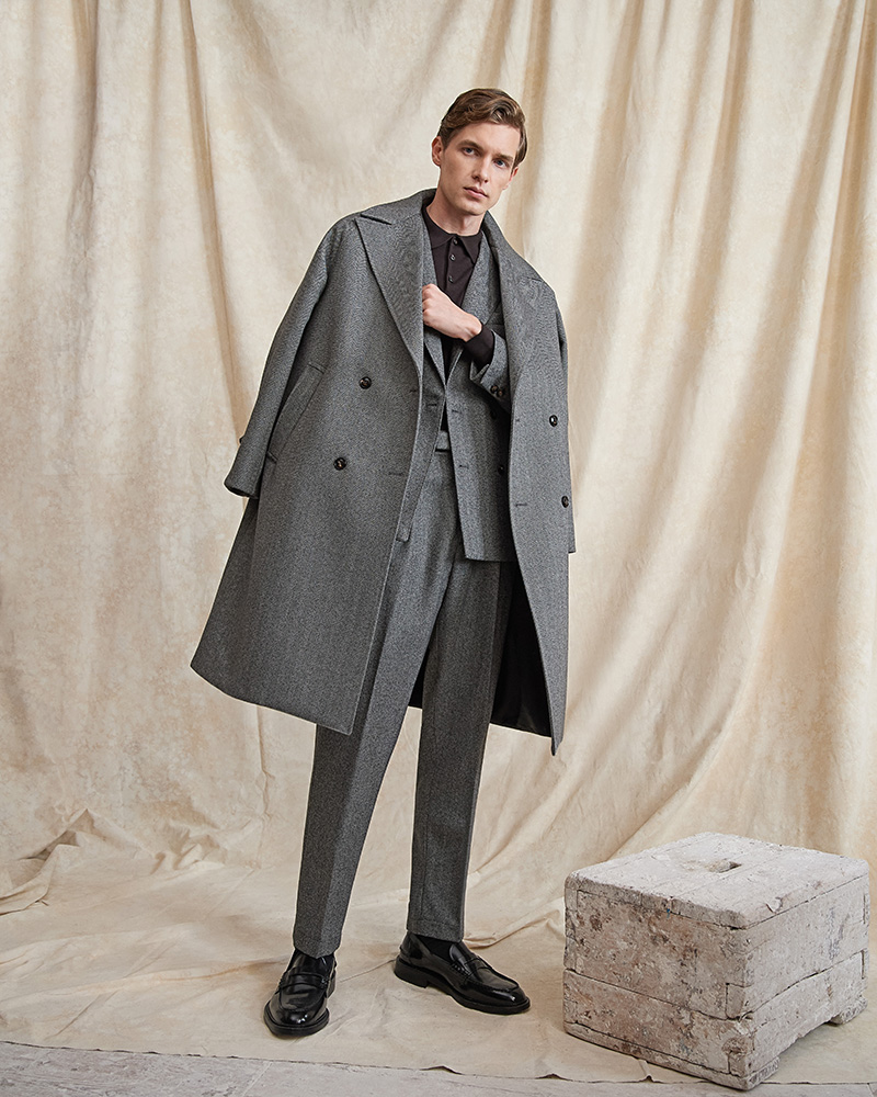 I nuovi modelli si trasformano in preziosi capi che combinano l’animo contemporaneo del brand vicentino alla modernità di un tessuto naturale ma avveniristico. Le overshirt Sorbonne e Vivienne accostate ai pantaloni Concorde, Victor e Venice. Il doppiopetto St. Georges con i pantaloni Bercy.