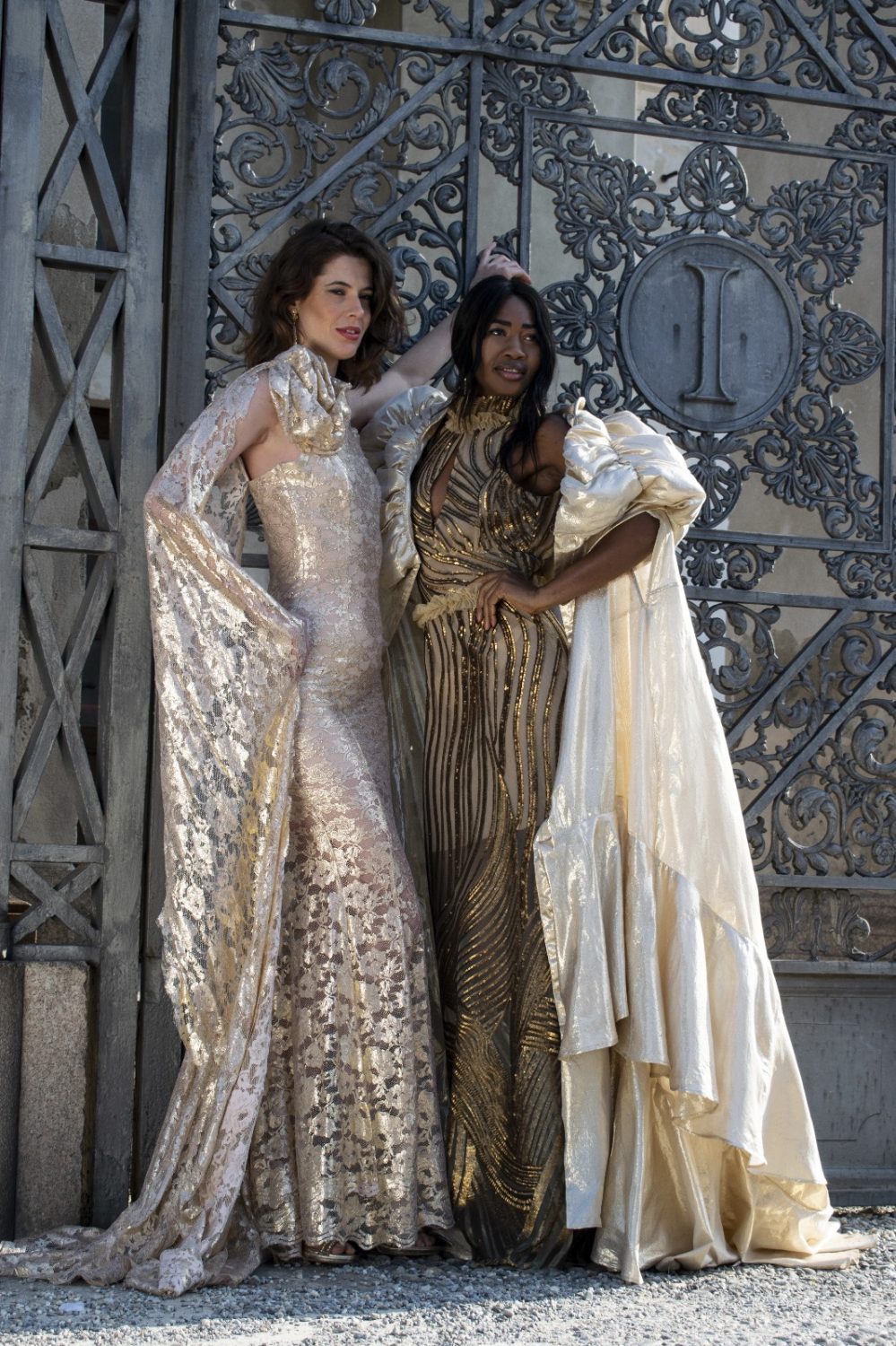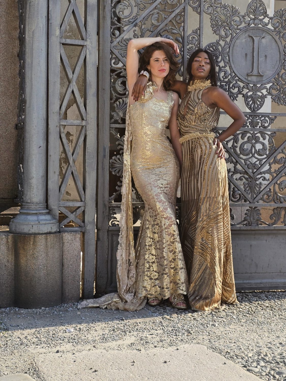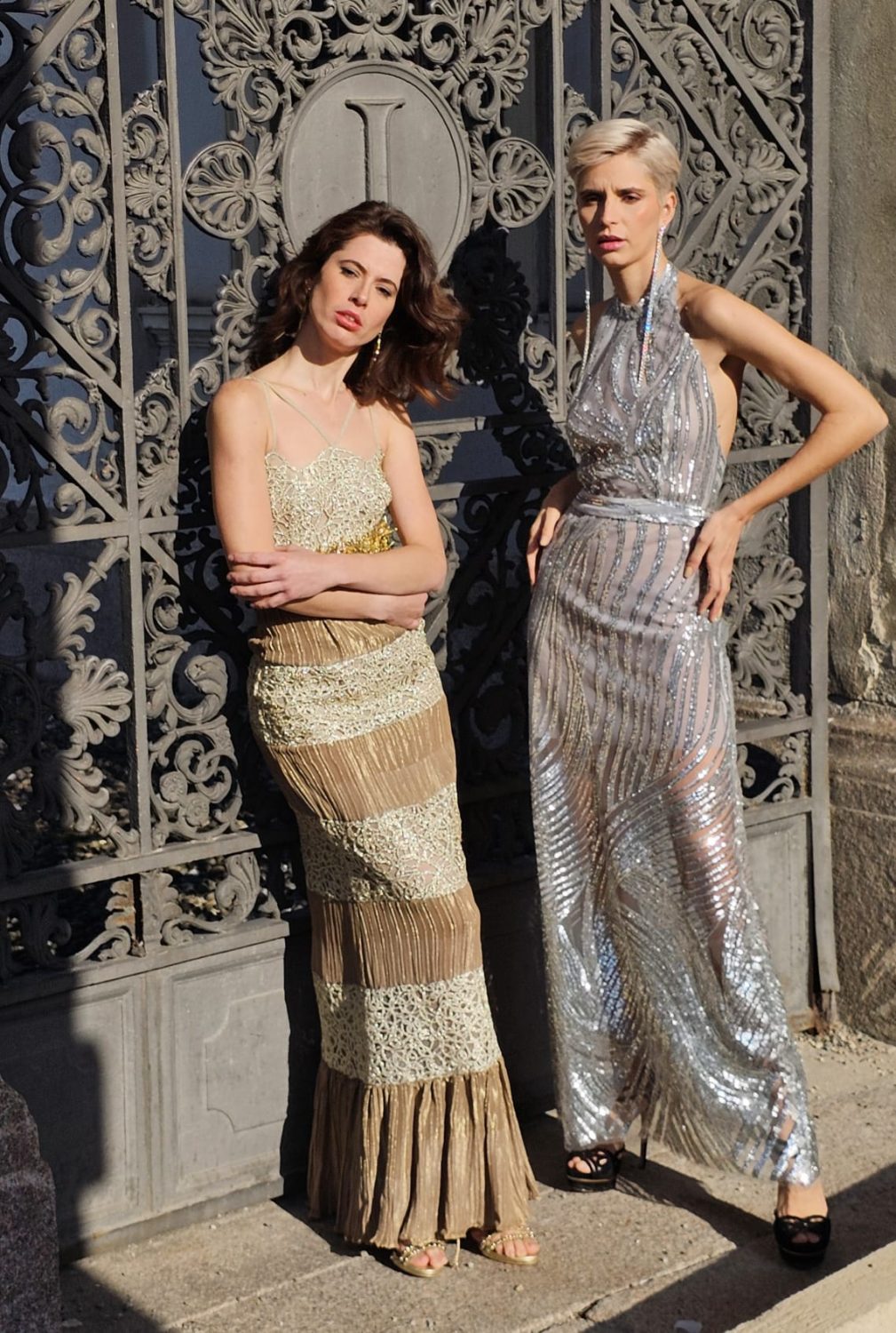 Le foto con Jandira e Federica Figurela sono esemplificative di uno stile lussuoso che ben si addice a una location di prestigio scelta per lo shooting, che richiama fantasiosamente a un’occasione glamour per lo sfoggio di questa moda senza tempo.