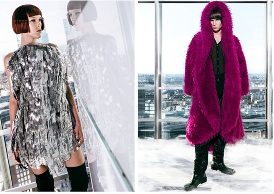 La collezione spazia dal nero profondo a tocchi di blu, bianco e un rosso vibrante che richiama l’essenza urbana high-tech di BYBLOS, integrando anche eco-pellicce che adottano forme ovoidali per un’interpretazione contemporanea e consapevole. L’evoluzione del trench da solido a liquido, trasformandosi in abiti di seta liberamente fluenti, rappresenta la nostra visione di versatilità e cambiamento, sottolineando la continua transizione tra forme e stati diversi.