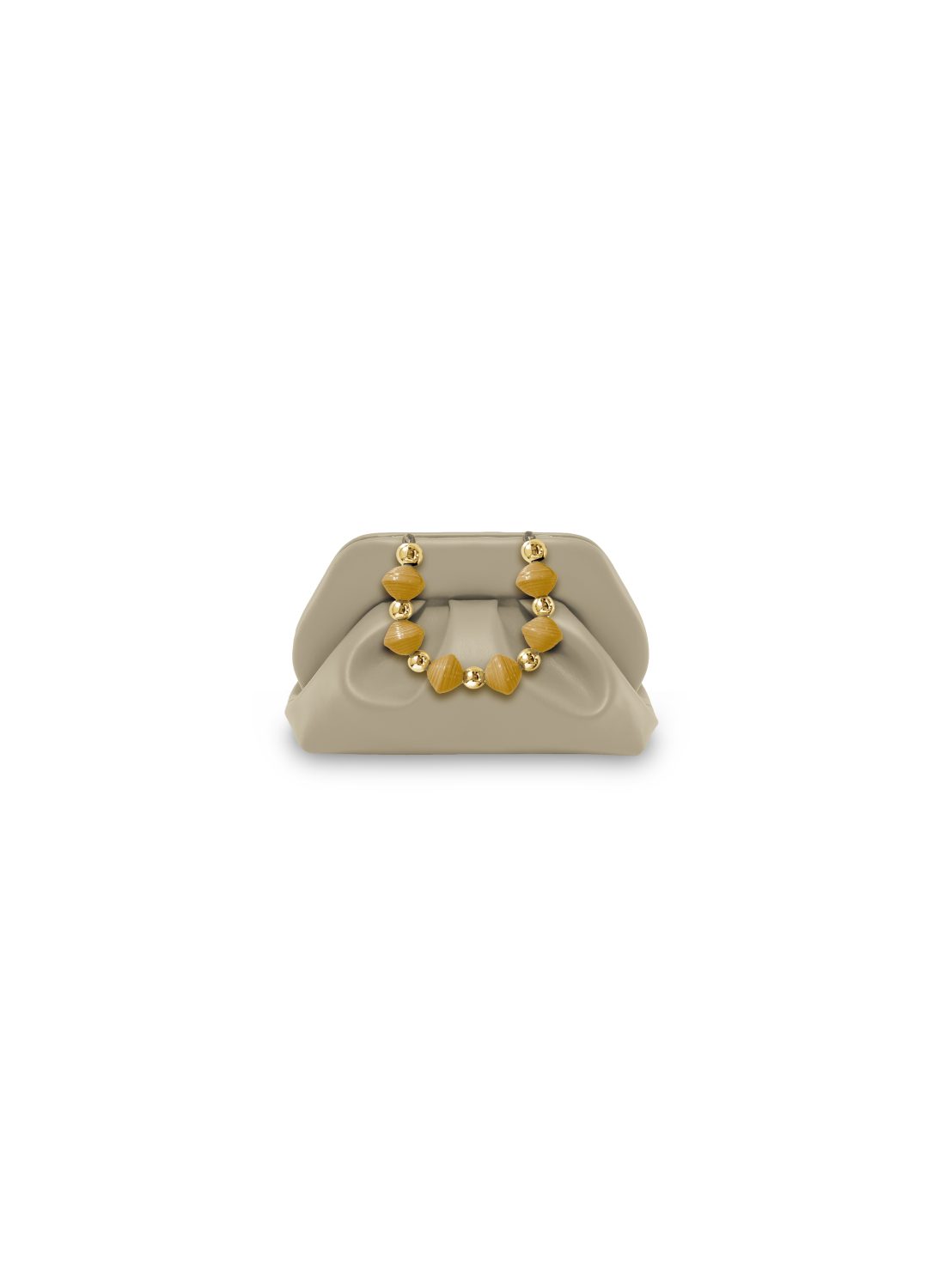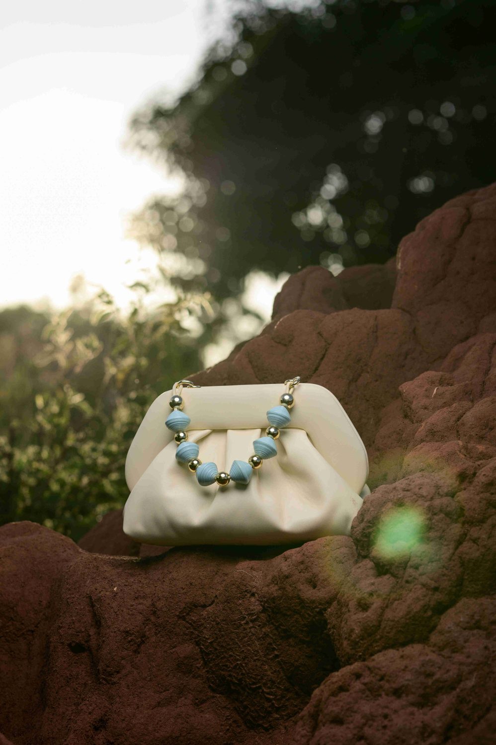 - La seconda introduce manici decorati con macro-perle di carta, presenti sulle borse Dafne e Tia.