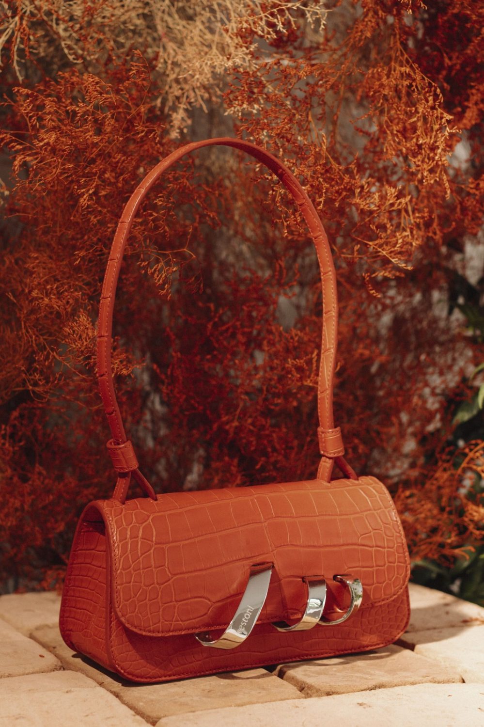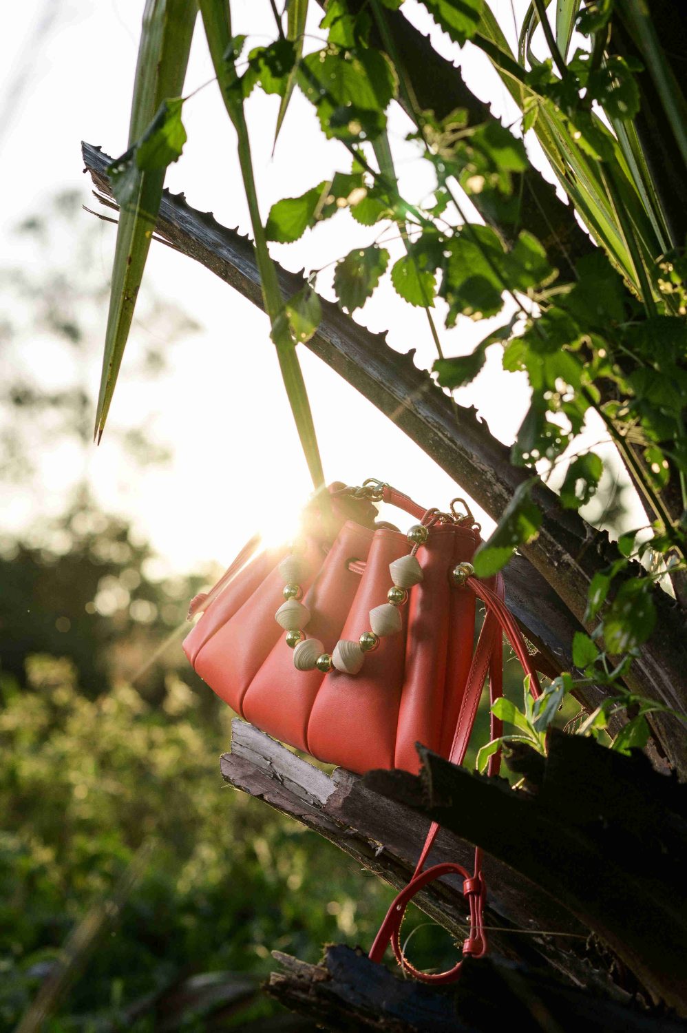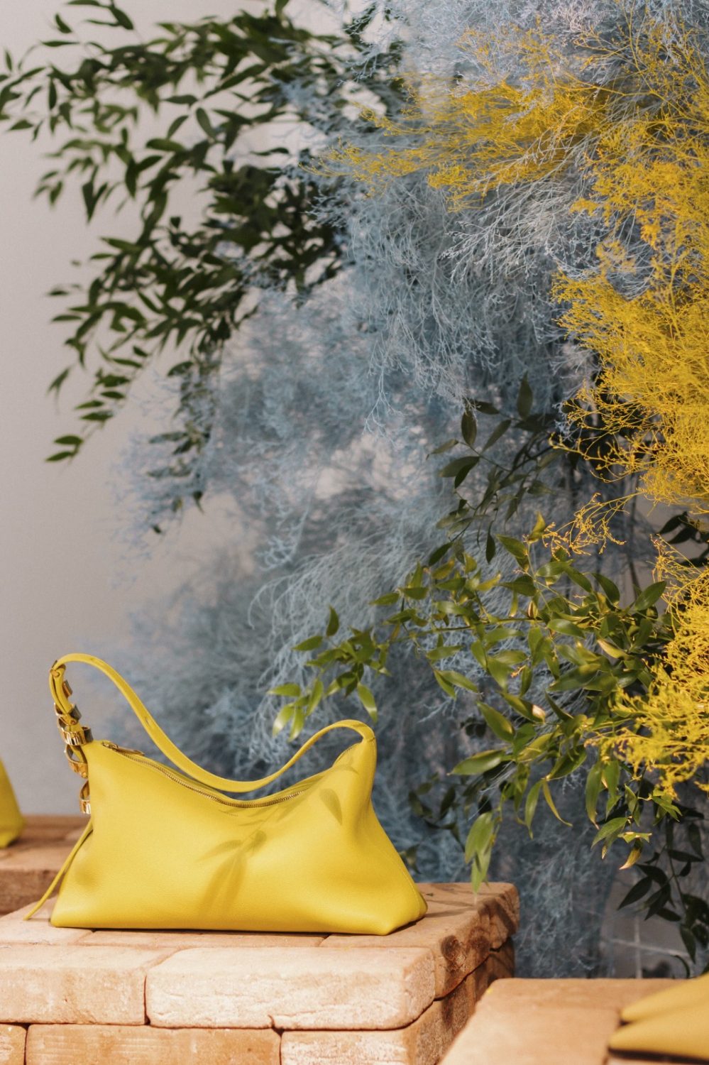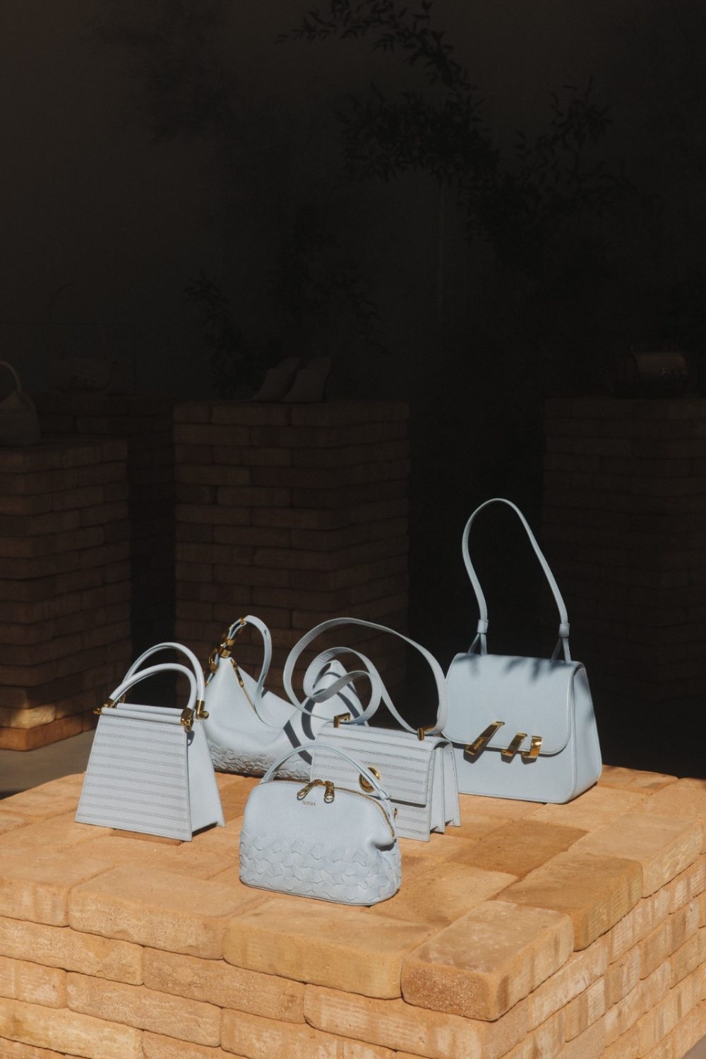 Le borse sono al centro della collezione, con modelli iconici e nuove proposte, caratterizzate da lavorazioni artigianali e una palette cromatica ispirata alla natura autunnale. Tra le borse di punta, la DUA si presenta in pelle scamosciata Loden e nella versione Bubble Double, con tonalità che richiamano il muschio e il foliage. La borsa Era spicca per il suo manico intrecciato, mentre la handbag Marlene si distingue per l’iconico anello con nodi e piercing.