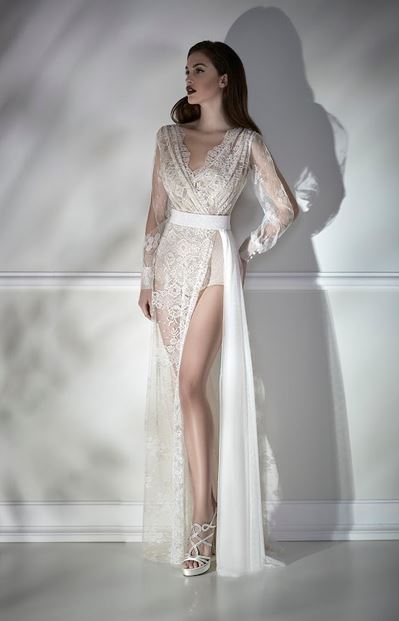 La linea Seduction è una collezione luminosa e originale caratterizzata da linee iper femminili che accompagnano la silhouette, bustini stringati, trasparenze, scollature, drappeggi, effetti tattoo, ricami e ricercati pizzi francesi. Abiti, realizzati rigorosamente a mano in Italia da sarte e ricamatrici esperte, ispirata in parte all’intramontabile Old Hollywood style.