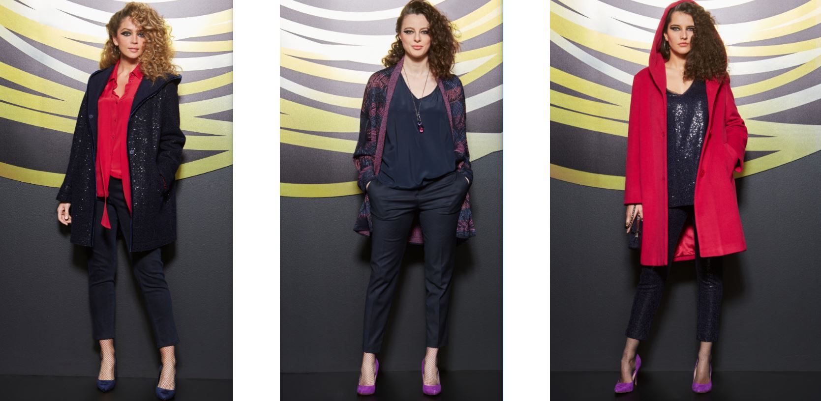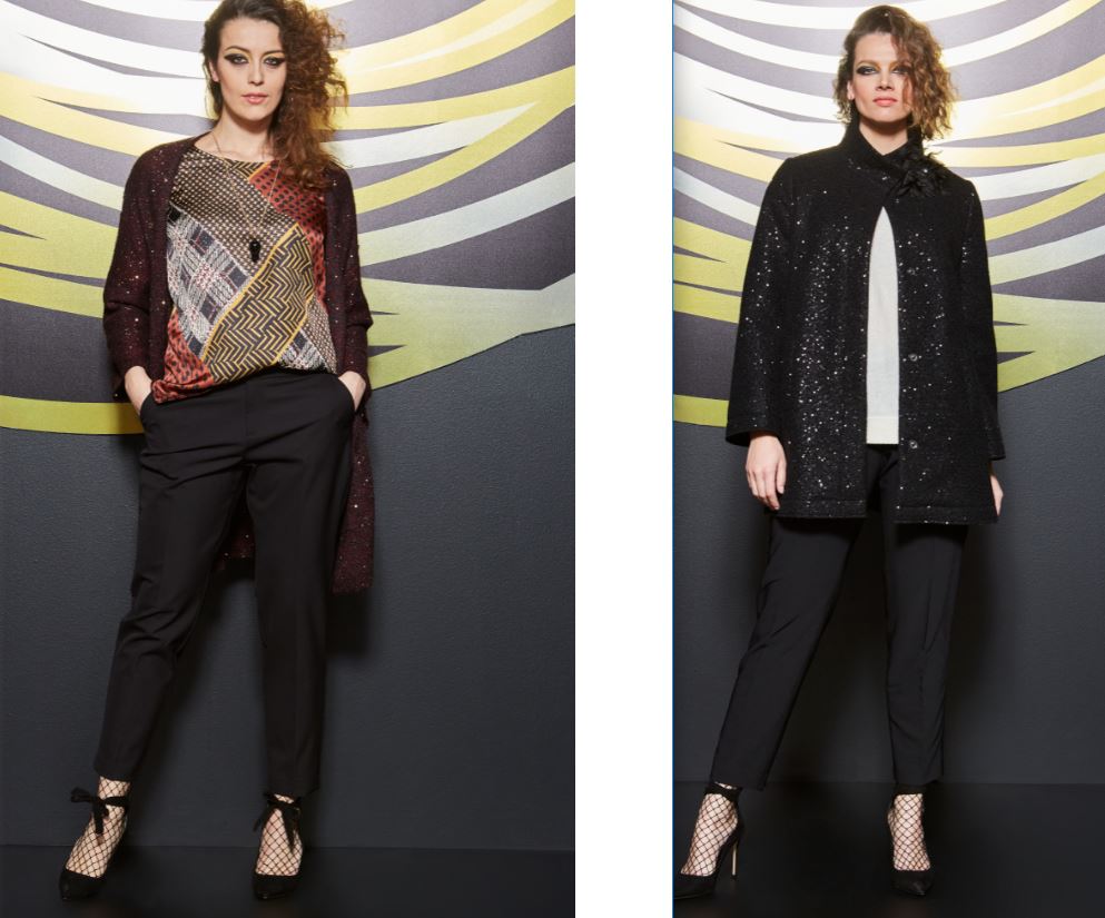 La collezione “Mara Venier per Luisa Viola” A/I 2019 propone un desiderio di ottimismo e di pensiero positivo, che si manifesta nei colori e soprattutto nelle pailettes: tocchi di luce che ritroviamo trasversalmente su tutta la collezione, dal leggings vagamente “disco”, ai dettagli del nuovo parka, per arrivare alla raffinata maglieria dove fili di micropailettes si intrecciano a filati dalla caduta fluida. Anni Ottanta rivisitati in chiave chic ed anche un po’ sperimentale, come i caldi cappotti di lana cotta ricoperti da pailettes, a formare un originale effetto rugiada. C’è una base di nero e blu notte, tagliata da colori accesi: rossi, fuxia e viola, presentati da soli su bluse di seta o combinati fra loro su maglie jacquard dai disegni astratti. E c’è una parte preziosa fatta di neri scaldati dall’oro. Un mix di giorno e sera, di giacche anni ‘80 ad un solo bottone realizzate in gessati maschili, di velluti jacquard e devoré, di ecopellicce abbinate al nylon, da sposarsi a pantaloni fluidi o a jeans a sigaretta con la banda ricamata, ovviamente da pailettes, in un giocoso ed elegante mix and match.
