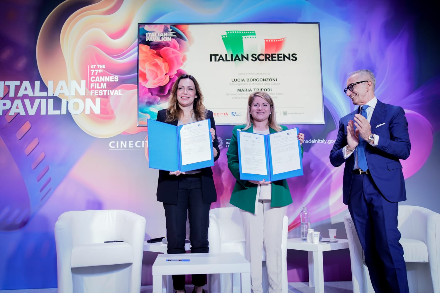La conferenza di ITALIAN SCREENS si è svolta presso l’Italian Pavilion (Majestic Hotel – Cannes) e ha visto importanti presenze istituzionali: Lucia Borgonzoni, Sottosegretario al Ministero della Cultura, Maria Tripodi, Sottosegretario al Ministero degli Affari Esteri e della Cooperazione Internazionale, introdotte da Roberto Stabile, Responsabile del Progetto ITALIAN SCREENS. Un’occasione straordinaria per affrontare sviluppi e possibili strategie sul tema dell’audiovisivo italiano in ambito internazionale.