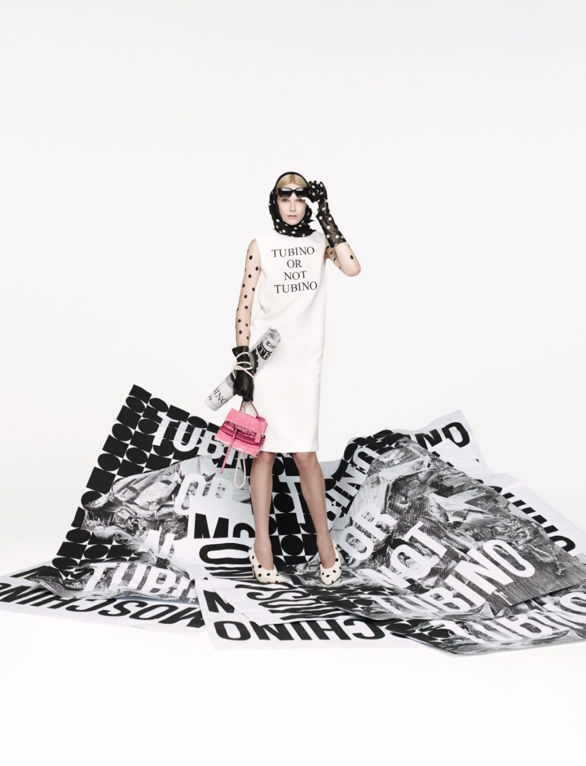 Fotografata da Willy Vanderperre, la campagna mostra le protagoniste mentre interagiscono con enormi manifesti grafici, strappandoli e piegandoli, in un gesto simbolico che sfida le convenzioni. Il set minimale, dominato da uno sfondo bianco, enfatizza la forza visiva delle immagini e mette in risalto l’eredità ironica e irriverente di Moschino.