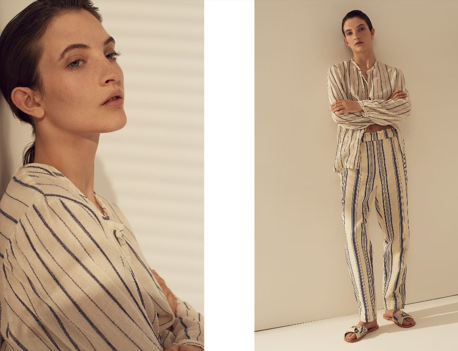 La precisione e la sartorialità dei tagli vengono affiancate da stampe esclusive che rendono i tessuti personalizzati e dinamici e testimoniano l’artigianalità e la cura sartoriale. Sciarpe e scialli con bordi frangiati, cappelli in paglia, cerchietti originali, borse in pelle e paglia, ciabattine jacquard dai toni della collezione e sandali in cuoio completano i look proposti per una donna che non lascia mai i dettagli al caso.