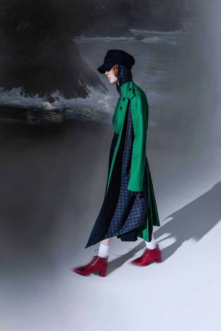 d’inverno con la foschia soffice che ammanta le sensazioni, dove le ombre e i colori dell’oceano nordico dipingono un paesaggio dell’anima che è sfondo di una storia di emozioni. Dalla scintilla iniziale, Alessandro De Benedetti imbastisce il suo racconto personale: con gli abiti narra l’onirica attesa vissuta da una donna innamorata di un marinaio, la immagina scrutare le onde, veste la sua raffinata malinconia con il conforto dei capi che il suo uomo le ha lasciato prima di andar via.