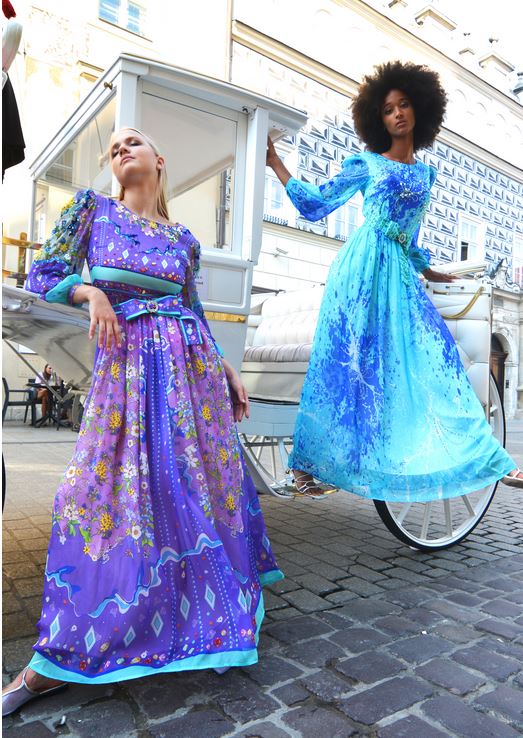 Lo stilista siciliano, che ha creato il brand a Milano nel 2012, si è sempre distinto per uno stile dinamico e femminile, spesso molto colorato. Ecco quindi che in questa collezione il tessuto diventa come la tela di un quadro, le stampe riprendono elementi essenziali della natura che spazia tra acqua e terra, solido e liquido.