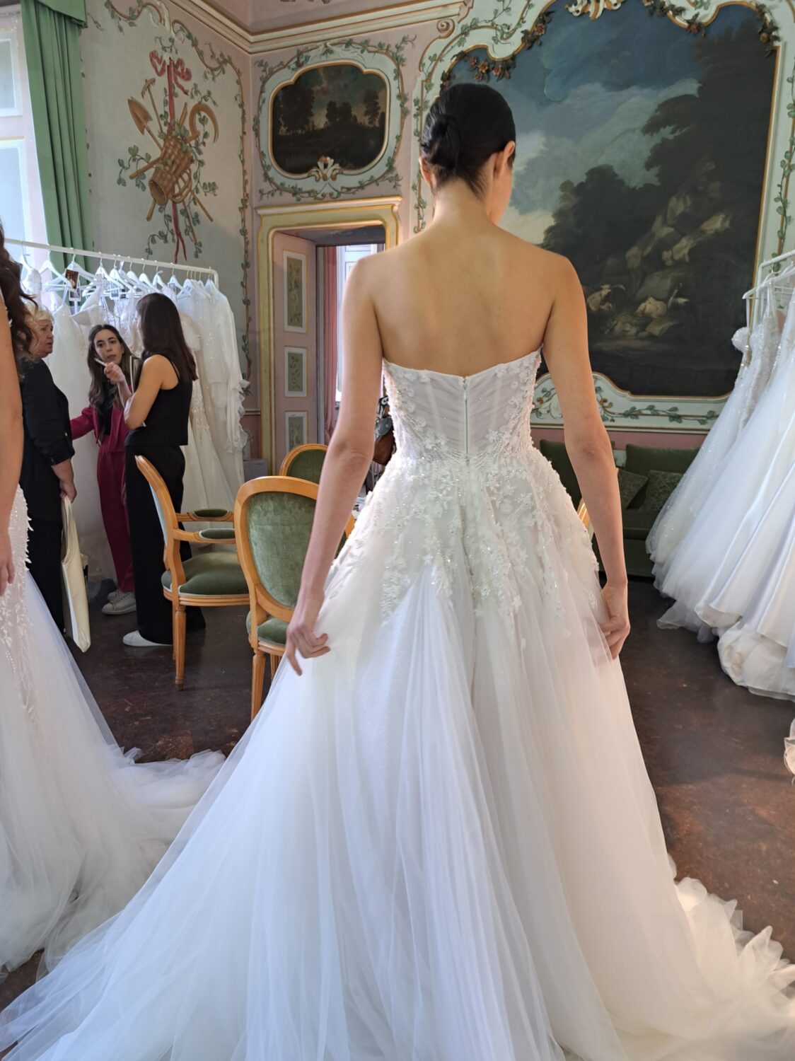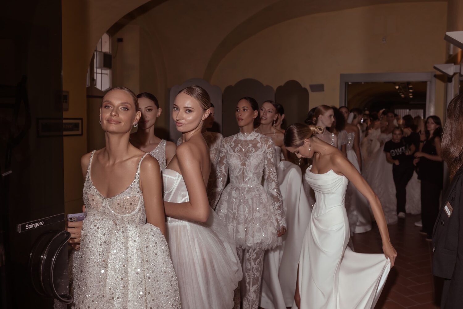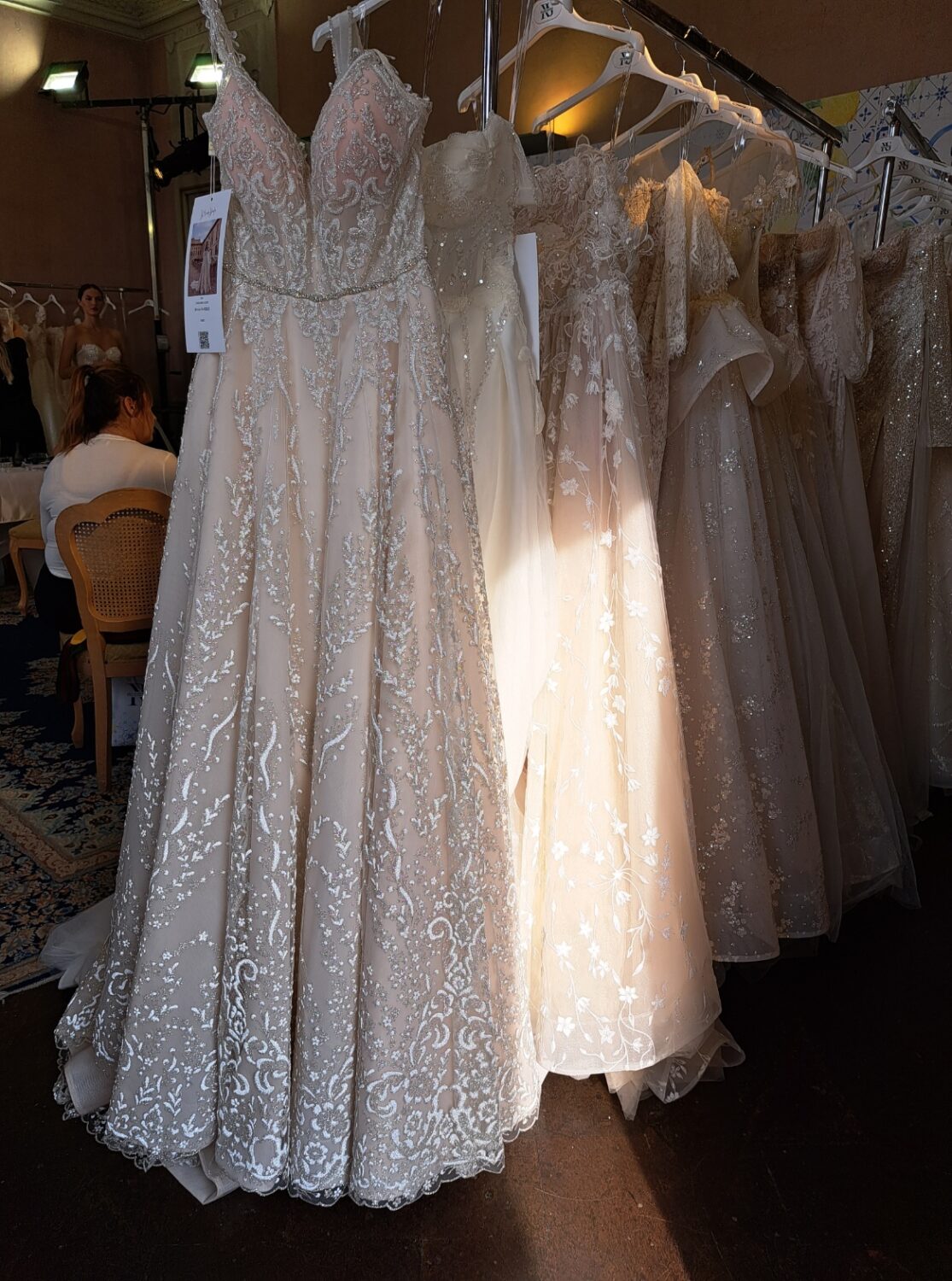 24 brand di abiti da sposa, magistralmente realizzati con materiali pregiati (Yedyna, Andreas Moskin, Aria, Ariamo Boho, Ariamo Light, Armonia, Carfelli, Daria Karlozi, Dominiss, Giovanna Alessandro, Giovanna Luxury, Ida Torez, Innocentia, Innocentia Divina, Lanesta, Love by RS, Madioni, Oliver Martino, Pollardi, Ricca Sposa, Snow White, Styran, Terani) 3 di calzature, con pellami italiani (Kachorovska, Emmelie Delage, Jade) e uno di accessori (Zarmilkas).