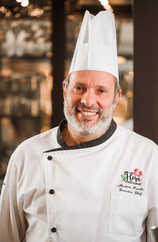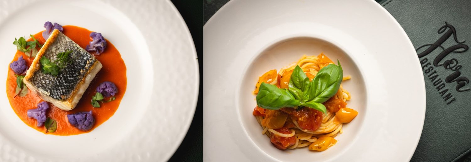 La proposta della cucina è affidata allo chef Massimo Piccolo e parte da materie prime di grande eccellenza per una proposta è così un concentrato di creatività, materie prime di grande eccellenza e rispetto della migliore cucina italiana che si esprimono nella bellezza della cornice del settimo piano dell’Hotel Flora. In questa carta spiccano tra gli antipasti, la Ceviche di ricciola al latte di cocco e lime ma anche Carpaccio di manzo con sedano rapa, olive taggiasche, capperi e tartufo con olio affiorato, piatti che rielaborano la tradizione tenendo fede alle sue regole auree con qualche “licenza di gusto”. Seguono un antipasto di mare come la Zuppa di ceci con seppie scottate e un piatto vegetariano come il Lingotto di Parmigiana con gel di basilico, estratto di pomodoro e fonduta di mozzarella. Tra i cinque primi piatti della carta di questa stagione dello chef Massimo Piccolo non possono mancare gli iconici Spaghettoni del Pastificio Felicetti ai tre pomodori, un piatto classico ma di grande ricerca e con una Materia Prima con le maiuscole. Dal piennolo al datterino fino al pachino, impiegati per la salsa, in questo piatto ogni ingrediente ha una bella storia da raccontare, con un gusto personale da mettere al servizio della portata. Dalla pasta selezionata in uno dei pastifici più importanti d’Italia che con lo chef Massimo Piccolo ha un rapporto privilegiato, avendolo già “ingaggiato” per due cooking show ad eventi gastronomici di rilievo come Identità Golose e FoodExp, fino ai tre pomodori che vengono inseriti in momenti separati nella ricetta per cercare l’armonia perfetta senza che nessun sapore prevalga sull’altro. Così ogni dolcezza e ogni acidità trova il proprio spazio, completandosi, e andando a elevare uno dei piatti più famosi e rappresentativi della cucina italiana nel mondo: la pasta al pomodoro. Una foglia di basilico e un giro d’olio chiudono quest’opera di “pasta e magia” citando la felliniana frase che rende onore a tutta una tradizione di amore per la tavola, ossia “La vita è una combinazione di pasta e magia” dove l’incanto lo fa nascere chi sa valorizzare la pasta in modo unico, come lo chef Piccolo. Parmigiano sì o no? A discrezione del cliente, ma essendo lo chef un purista del prodotto consiglia di assaporarlo senza altre distrazioni, almeno la prima volta.