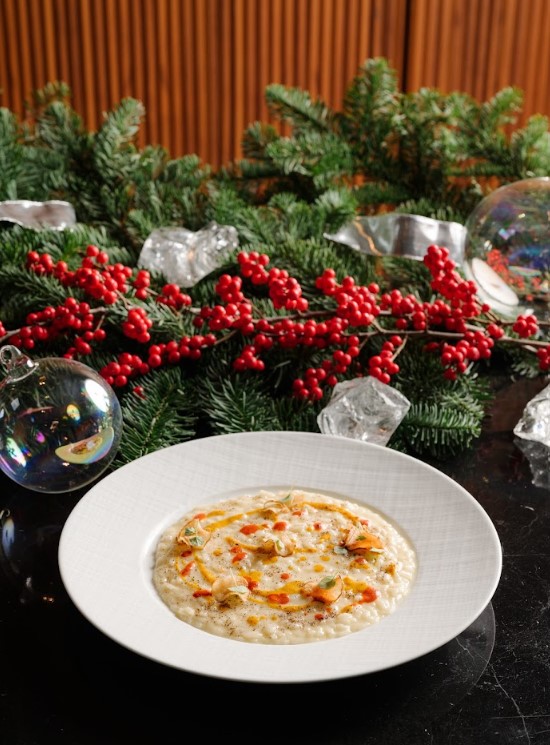 Per il 25 dicembre, Chef Antonio Guida ha creato un menu che unisce in perfetto equilibrio selvaggina e profumo di mare, con creazioni come il Risotto con salsa di cacciagione e tartufo bianco e Seppia e scampi con crema di sedano rapa, uova di pesce e salsa al nero di seppia. Le portate si susseguono con coerenza ed eleganza fino alla delicata Mela con chantilly e sorbetto di mela cotogna a chiudere il menu.