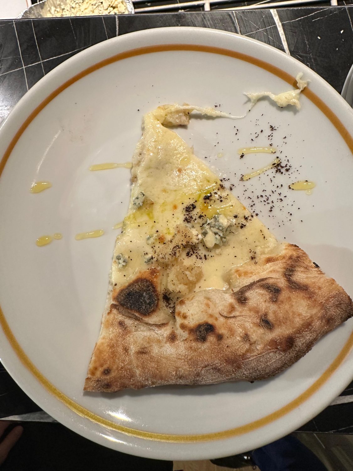Il menù degustazione, composto da sei portate, prevede antipasto, degustazione di pizza e dolce, con la possibilità di aggiungere un wine pairing.