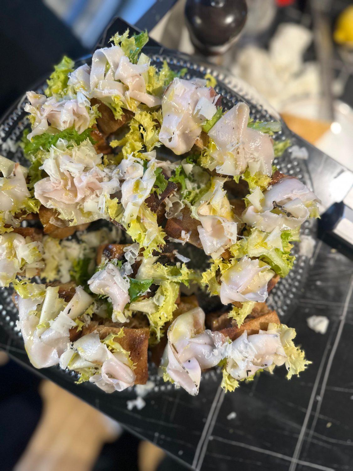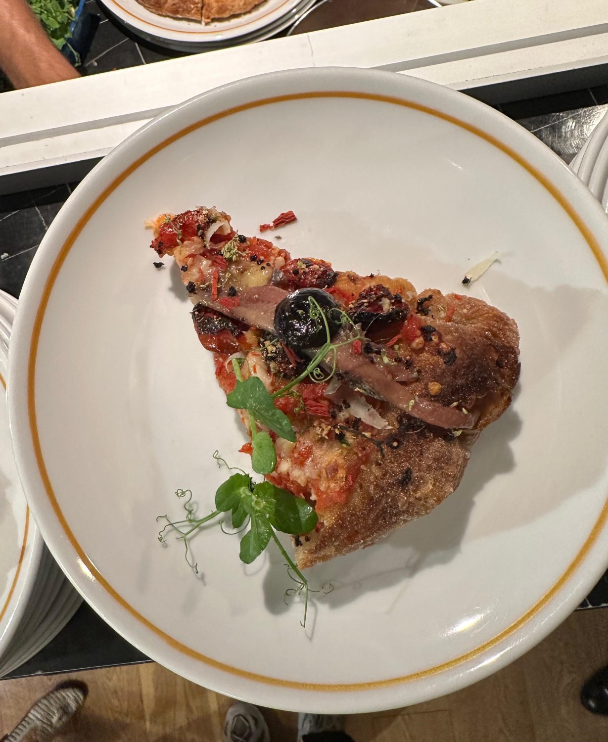 I due maestri pizzaioli hanno intrattenuto gli ospiti preparando le pizze nella cucina a vista, tra farina, ingredienti di prima qualità e un’atmosfera scherzosa e informale. “Sono felice di impastare e lavorare per un’intera serata fianco a fianco con il mio amico e collega Raffaele Bonetta – dice Simone Nicolosi, pizza chef di Biga Milano -. Raffaele è uno dei migliori pizzaioli esperti in metodologie e tecniche di impasti, una figura importante per me. Prepareremo i nostri cavalli di battaglia; io mi diletterò nella Napoli 2.0 su base padellino ai semi, fritto e ripassato al forno, pomodoro San Marzano CBT e pomodoro ciliegino confit, con alici di Cetara, origano di Siracusa, crema di aglio fermentato nero, frammenti di pomodoro, terra di olive, parmigiano reggiano e basilico fritto”.