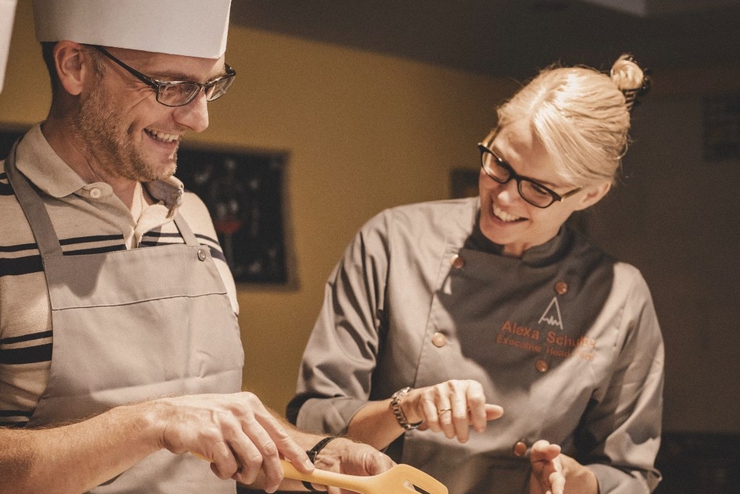 Nell’antico fienile risalente al 1700 e sapientemente ristrutturato nel 2021, le 200 etichette sono ospitate in una cantina verticale realizzata con mattoni recuperati, nascosta dietro una scala a spirale che conduce alla suggestiva sala degustazione e alla sala da biliardo. Una scelta che abbraccia il restyling rispettoso del contesto circostante, un omaggio al suo passato. Nella sala degustazione, che si affaccia su un cortile incantevole, gli ospiti possono immergersi in degustazioni intime con i produttori del posto guidate da Markus Schulz, il tutto accompagnato da stuzzichini preparati con ingredienti a filiera corta, la filosofia culinaria che guida l’offerta gastronomica del relais.