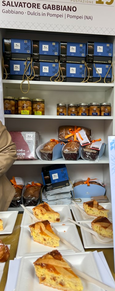 Particolare regionale apprezzato, il banco di Corrado Carosi, con la sua Spongata sarzanese, ai confini tra Liguria e Toscana, e il panetto di Loreto di Claudio Marcozzi, maestro marchigiano dell’Ampi.