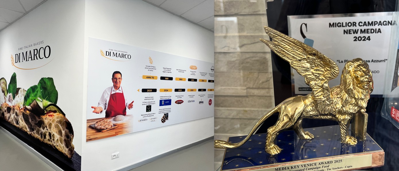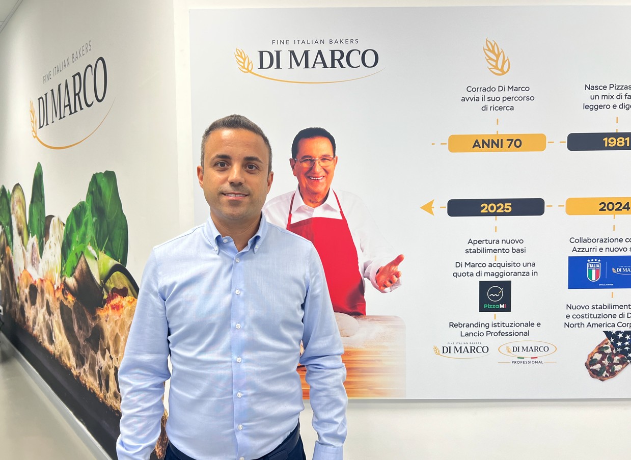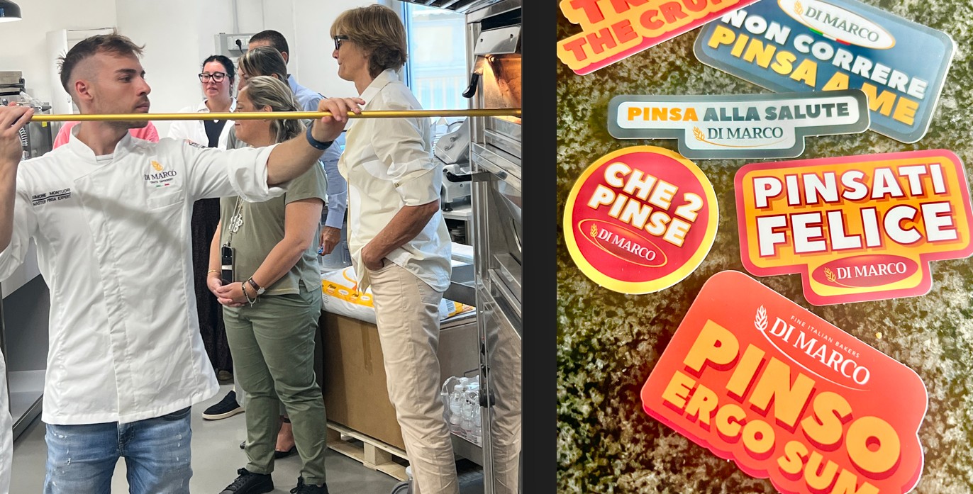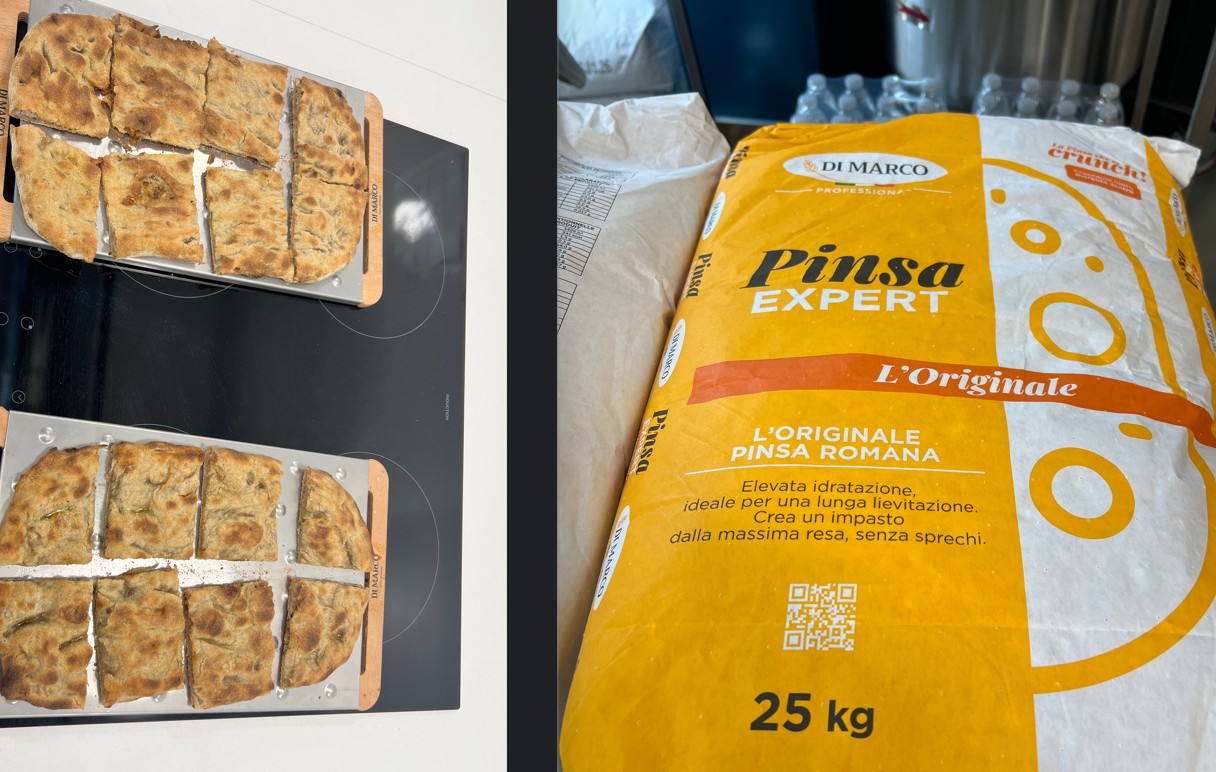 E pensare che quando fu inventato il nome Pinsa, dalla genialità creativa di Corrado Di Marco, a Roma nessuno gli dava credito. Anzi lo scoraggiavano: il prodotto era diverso ma il nome era troppo assonante con quello celeberrimo della pizza. Siamo nel 2025 e a Guidonia, alle porte di Roma, abbiamo potuto constatare cosa ha comportato l’esplosione del consumo di Pinsa in Italia. Proprio nell’azienda che l’ha inventata. Ora il marchio registrato qualche decade fa, è decaduto perché il successo di questa specialità alimentare (riconosciuta quest’anno anche a livello ministeriale) lo ha trasformato in un nome comune che indica un prodotto. Già nel 1985 l’azienda Di Marco aveva iniziato una serie di sperimentazioni con le farine alla ricerca di un nuovo prodotto d’avanguardia che fosse sano, leggero, ideale per la quotidianità e, soprattutto di qualità. In questa ricerca, durata diversi anni, a Corrado si è affiancata la moglie esperta nutrizionista, e insieme, dopo diversi tentativi ed esperimenti, la coppia Di Marco ha dato vita nel 2001 a un prodotto nuovo, dalla caratteristica forma ovale, croccante fuori e morbido dentro: La Pinsa.
