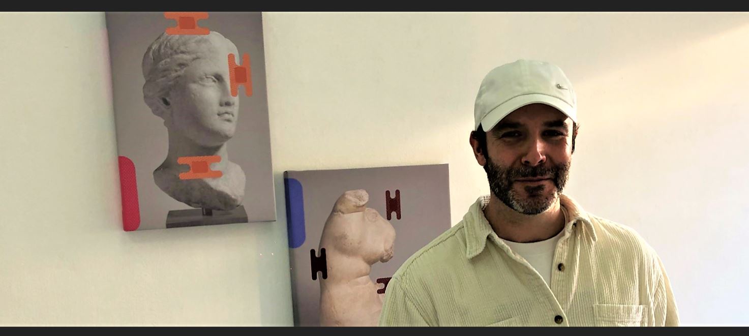 Sulle pareti stampe di elaborazioni digitali, in cui ad immagini di antiche sculture che ritraggono Afrodite e Apollo sono sovrapposti dei cerotti a rimarcare le fratture del marmo, alludendo al desiderio di ricostruire l’irraggiungibile bellezza idealizzata della classicità.