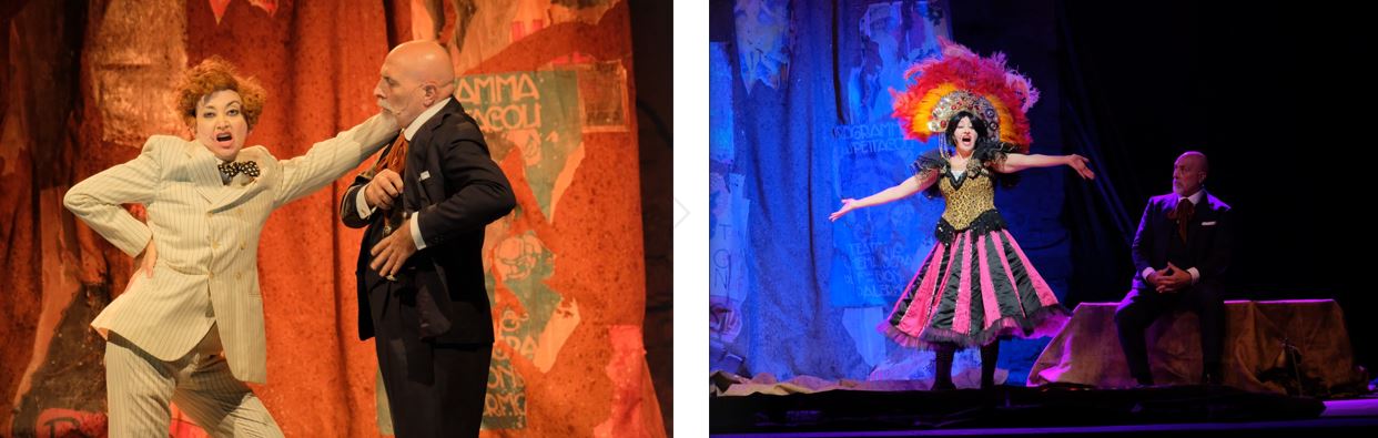 La Di Rauso impersona efficacemente il ruolo, dotata di una voce potente e armoniosa, una fisicità non comune, riporta lo spettatore ai lustri e alle miserie ( ricordate Totò in Miseria e Nobiltà, dei teatrini con le ballerine, spesso ragazze fuggite dalla povertà cercavano una via di fuga, una vita migliore proprio nel teatro )alle le luci soffuse, alla figura dell’impresario di una volta, dei teatrini di provincia dove troverà, a cavallo delle due guerre mondiali, vita la rivista e il varietà con una Wanda Osiris stellare.