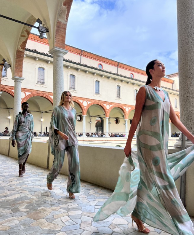 Esattamente come ha potuto ammirare il numeroso pubblico presente il 23 settembre alla sua passerella. Midali ci racconta: “Ad ogni edizione della fashion week, insieme alle modelle, sfilano donne con una storia personale da raccontare. Mi piace accendere un focus su donne che hanno trovato una loro eccezionalità, e si sono esplorate oltre la bellezza, spesso diventando grandi costruendo sulle proprie fragilità, oppure cambiando il percorso di vita, in un altro più significativo. Sì sono reinventate, esattamente come faccio io con la mia moda“.