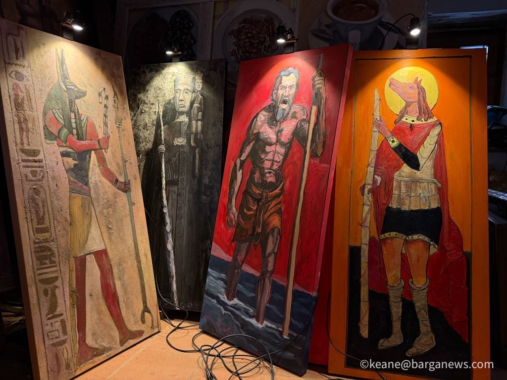 L’artista, nato in Irlanda nel 1956 e residente in Toscana dal 1985, firma una mostra che è al contempo omaggio e interrogativo profondo. Protagonista assoluta è l’antica statua lignea di San Cristoforo, collocata nel Duomo di Barga.