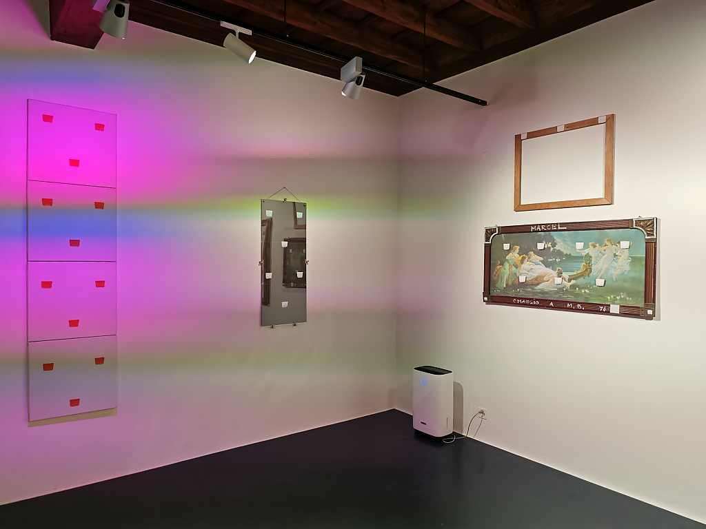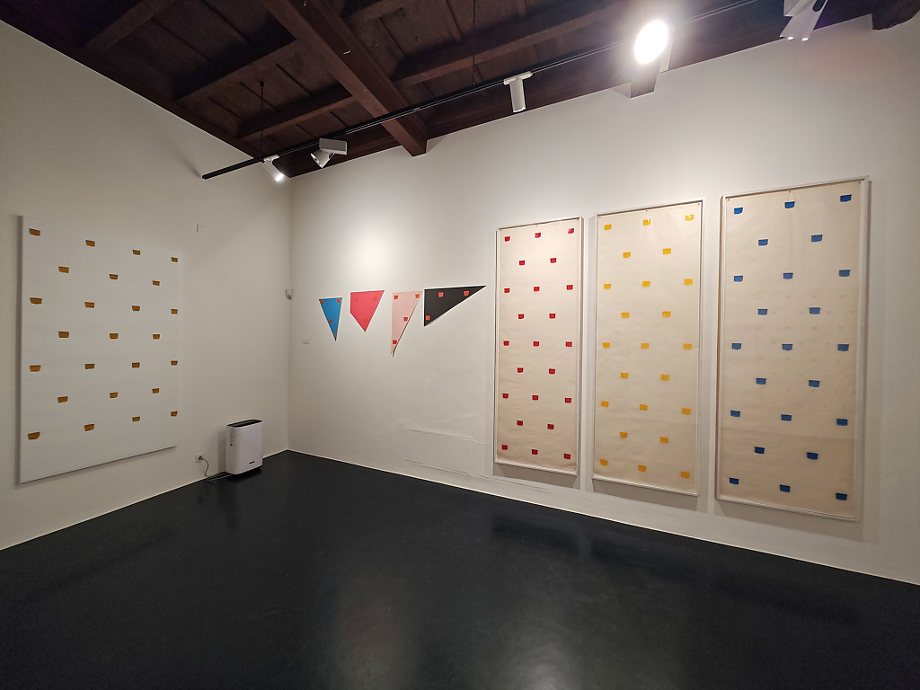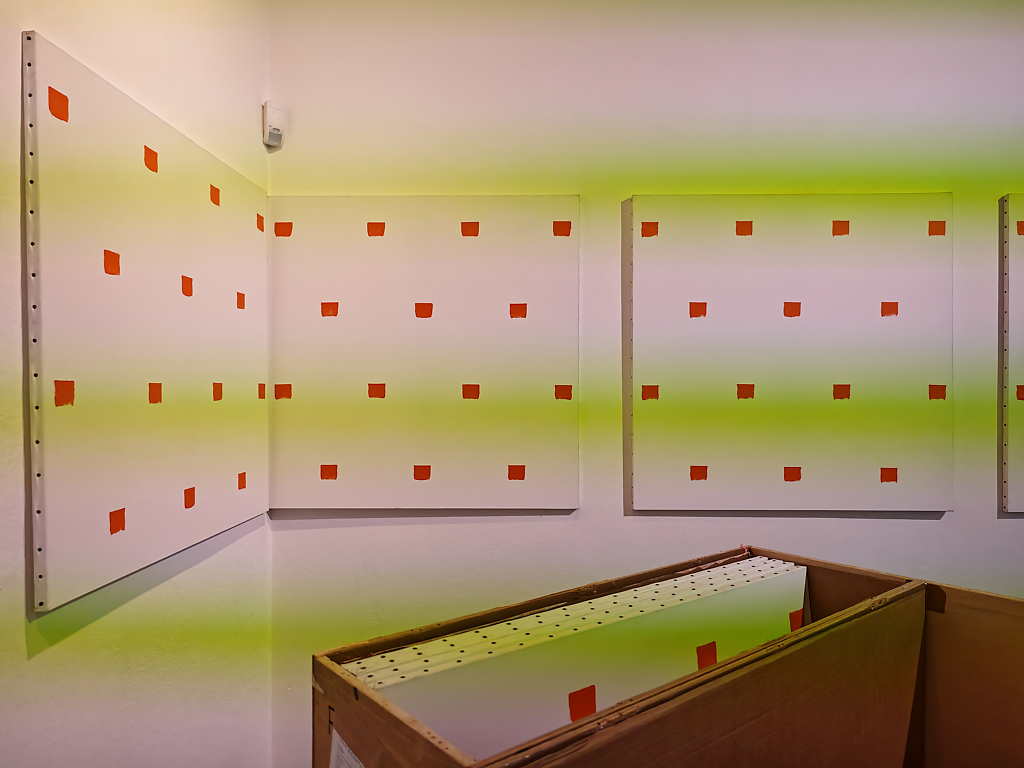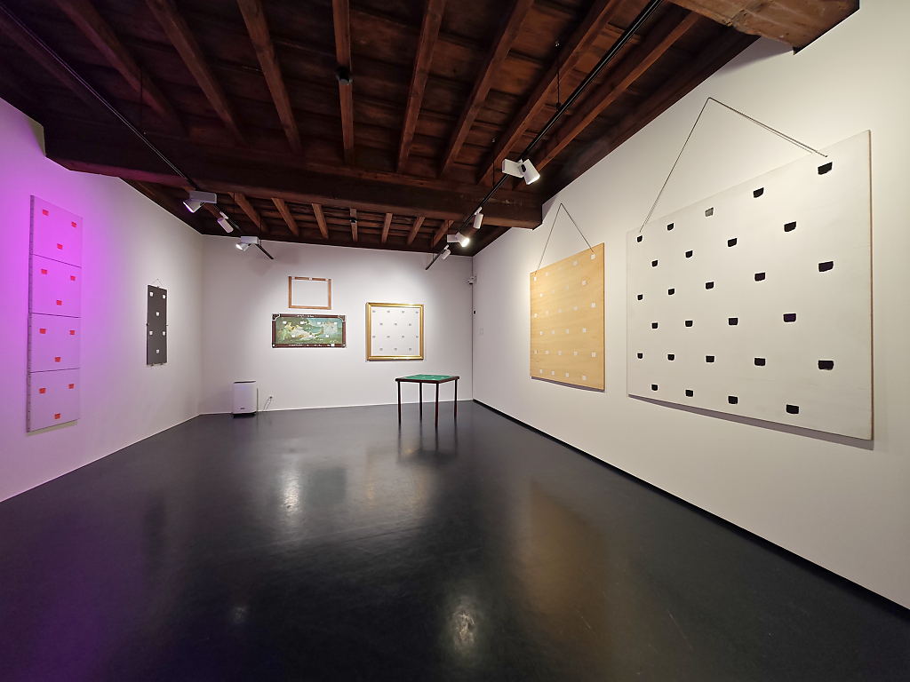 Le “impronte di pennello n. 50”, applicate in modo regolare a distanza di 30 cm l’una dall’altra, costituiscono il fulcro della pratica toroniana. Ma non si tratta di mero rigore meccanico: al contrario, l’esposizione di Locarno rivela la straordinaria versatilità di un linguaggio che, proprio nel suo vincolo, si apre a infinite modulazioni. È proprio in questa coerenza metodica che si rivela, con forza, la dimensione lirica e contemplativa dell’opera di Toroni.