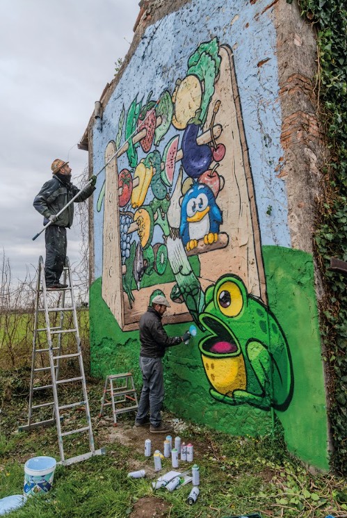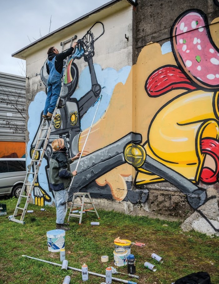 CIBO, street artist che da anni lotta contro l’odio trasformandolo in colore con il suo stile inconfondibile fatto di illustrazioni gastronomiche, ha sempre pensato alla street art come a un’arma pacifica contro l’intolleranza. Il suo netto punto di vista sul mondo ha scatenato spesso haters di parti avverse che si sono scagliati contro il suo lavoro vandalizzandolo. «Per questo motivo, vista anche la situazione geopolitica attuale e l’importanza di inviare un segnale forte in questo preciso momento – spiega CIBO –, io e la mia squadra abbiamo contattato artisti noti ed emergenti che rispettiamo per lavorare insieme a quattro mani al restauro di murales danneggiati, con l’obiettivo di sensibilizzare le persone lanciando un appello ai cittadini: dobbiamo agire ora, prima che sia troppo tardi».