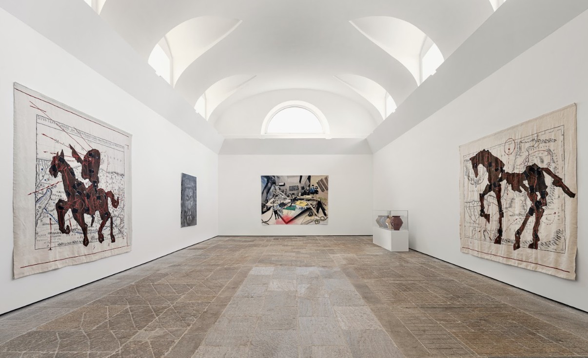 A completare le riflessioni proposte in questi ambienti, una scultura di Armando Testa Senza titolo (Segno) del 1990, in cui il corpo di Cristo si fa struttura e la struttura si fa corpo, in una simbiosi tra significato e significante. Sono anche esposti due suoi iconici manifesti, sintesi di un’estetica del messaggio pubblicitario, ma al tempo stesso emblema della storia personale della collezionista. Scendendo a piano terra, nell’Ala dei Rustici, si incontra una selezione di video installazioni con due lavori di Sabrina Mezzaqui, omaggi alla bellezza di una natura materna, e tre opere che affrontano il tema della patria di Adrian Paci la cui vicenda artistica si intreccia indissolubilmente con la storia e gli eventi politici della sua Nazione d’origine. Nella Scuderia Grande viene invece indagato il tema delle persecuzioni politiche, culturali o religiose e le conseguenti diaspore attraverso i lavori di Yan Pei-Ming, Ai Weiwei e William Kentridge, in cui le opere diventano veicoli di riflessione sui meccanismi di potere che condizionano identità e libertà di espressione. Il percorso si conclude con i lavori di Grazia Toderi e Thomas Ruff, che si confrontano con l’infinito e il sublime, e con un’opera di Peter Fischli & David Weiss installata nel parco della villa.