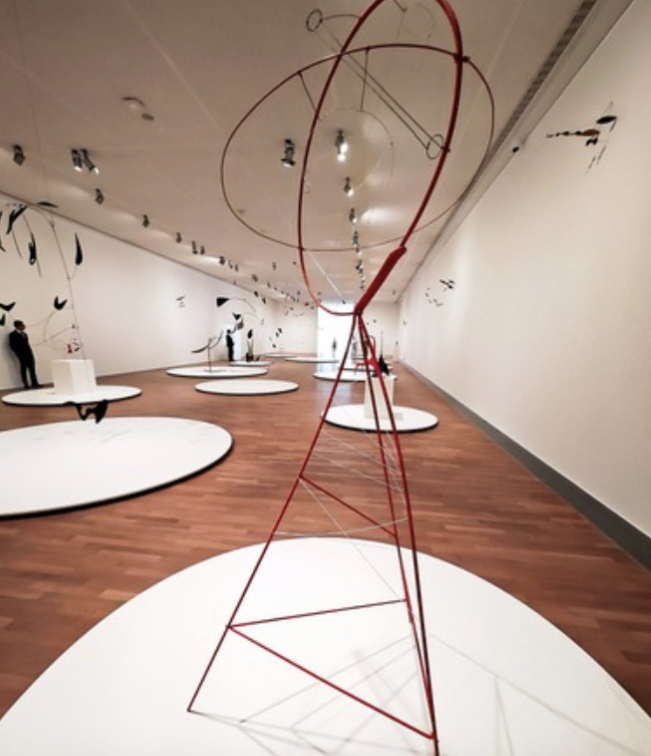 Evidenziano l’importanza dei mobiles di Calder, sculture cinetiche attivate dalle condizioni ambientali, come “Eucalyptus” e “Arc of Petals” e l’imponente “Red Lily Pas nell’ultima sala, che interagiscono con l’ambiente circostante.