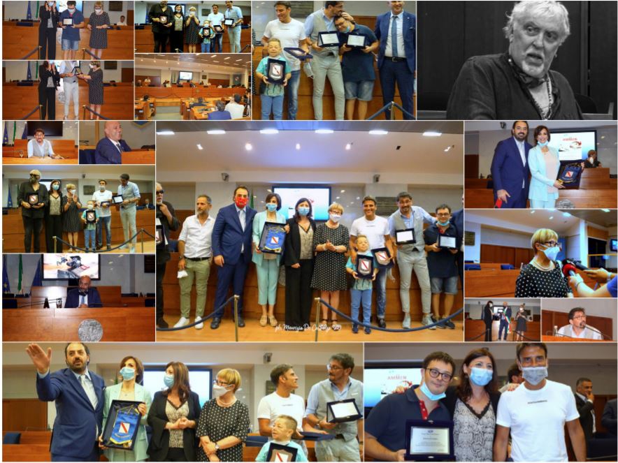 Sopra alcuni momenti delle presentazione (e premiazione) alla stampa del film “Ammen” svoltasi stamane 2 luglio 2020 presso il consiglio Regionale della Campania aula Giancarlo Siani.