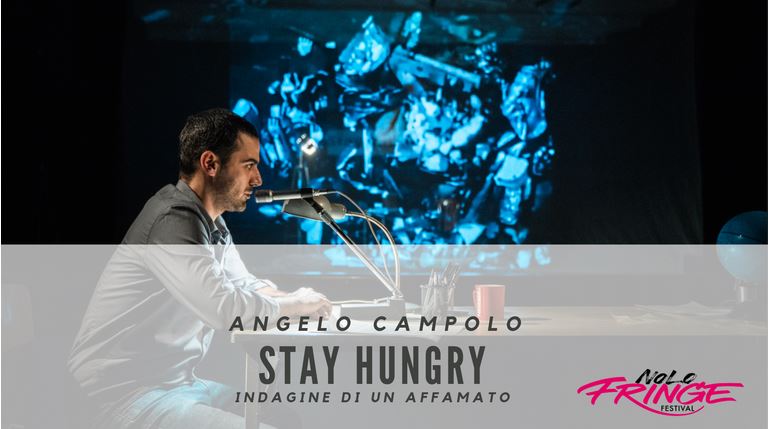 “STAY HUNGRY – Indagine di un affamato”, di e con Angelo Campolo con l’ideazione scenica di Giulia Drogo, videoproiezioni di Giorgio Rudilosso e la produzione a cura di DAF, è stato rappresentato al Ghe Pensi MI, uno dei luoghi simbolo della rinascita di intrattenimento e cultura nel quartiere milanese di NoLo.