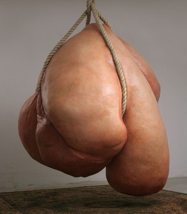 Corpi disturbanti ma immersi in una calma irreale perché hanno imparato l’angoscia esistenziale e riconosciuto l’incompletezza come condizione inevitabile dell’esistenza. Ogni opera suggerisce la promessa di un movimento che non arriva mai, dilatando il tempo in un unico, infinito attimo. E tra angoscia e malinconia, si susseguono fossili anatomici e corpi da incubo, fino ad arrivare a una scultura come “Mom”, per la prima volta in esposizione, in cui la forma torna all’origine e la carne diventa pura materia da plasmare, embrione indefinito che evoca inquietudini ancestrali. I Santissimi indagano forma e sostanza di esseri che hanno dimenticato la loro storia naturale e da dove provengono, in uno sfasamento continuo dell’identità. Una sorta di passione da laboratorio rivela l’empirismo filosofico come corrente culturale di riferimento dei Santissimi e si traduce nella messa in forma, in materia, in arte del pensiero filosofico-scientifico. La potenza delle immagini dei Santissimi, dunque, sconvolge e riscrive il concetto di pudore, di morbosità, di corpo in un orizzonte che contempla il cinema del primo David Cronenberg, alcune metamorfosi di Jan Fabre e il “corpo senza organi” teorizzato da Antonin Artaud.