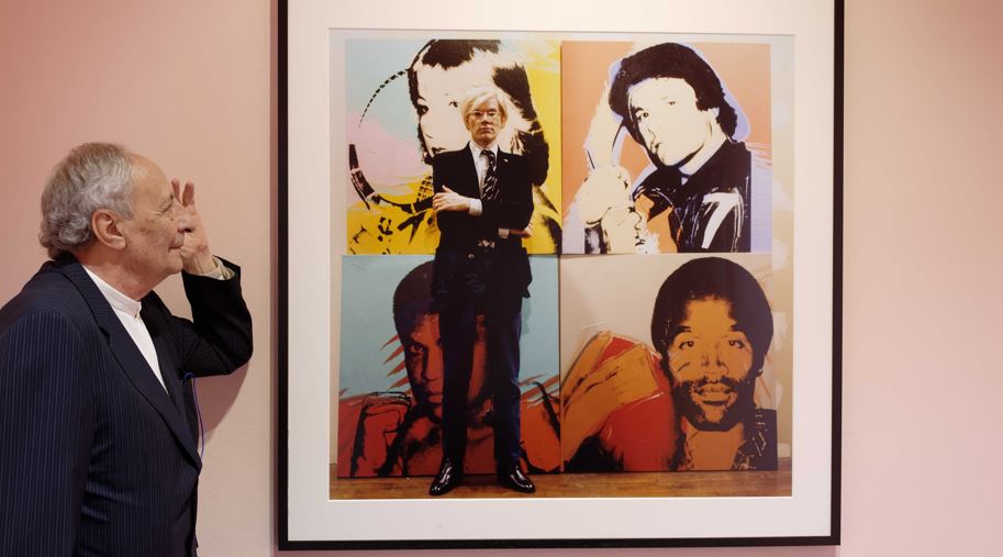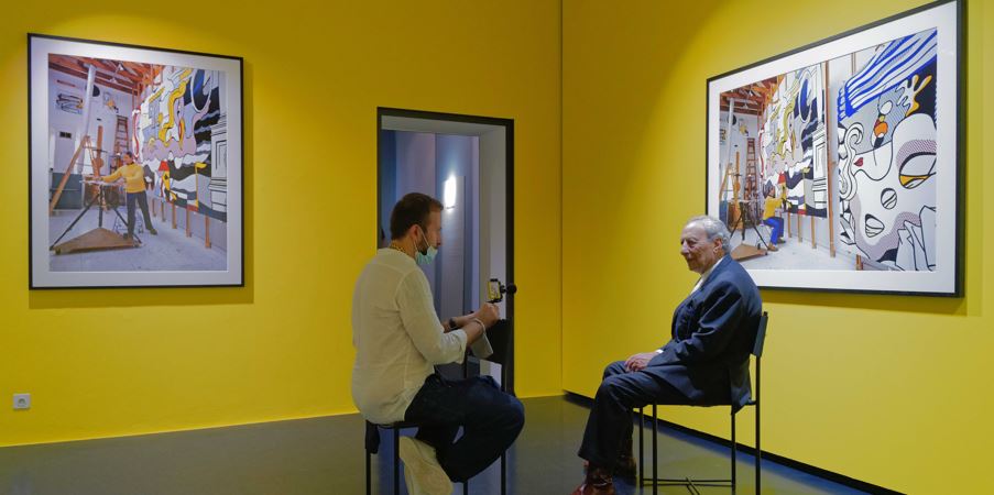 Possiamo così addentrarci furtivamente e in punta di piedi nell’ampio studio di uno tra i più celebri esponenti della Pop Art, Roy Lichtenstein, intento a ultimare una tela di grande formato oppure osservare Marino Marini scolpire all’aperto a Forte dei Marmi. Stupirci di fronte ad un Giorgio de Chirico elegantissimo in giacca e cravatta che studia il suo quadro illuminato dai raggi del sole provenienti da un lucernaio nel suo studio a Roma all’inizio degli anni Settanta. Invidiare Emilio Vedova, il pittore espressionista che lavora nel suo atelier veneziano usando non i pennelli ma le mani e pare quasi confondersi, coperto di colore com’è. C’è il gesto istintivo di Julian Schnabel – pittore e regista statunitense alle prese con vele nautiche ricoperte di colore su cui campeggiano dei piatti rotti – faccia da contraltare all’indagine sul colore e alla precisione dell’esecuzione di Piero Dorazio. Interrogarci insieme a Hermann Nitsch – uno dei massimi esponenti dell’Azionismo viennese – sulla fascinazione per l’opera d’arte totale mentre l’artista, con indosso il consueto camice intriso da precisi significati sacerdotali, è intento a camminare sulle sue tele mastodontiche. Fra i più spettacolari artisti ripresi in azione non poteva mancare la sequenza dell’amico fraterno Alberto Burri con in mano un bruciatore nel momento in cui crea una delle sue celebri “combustioni” in plastica mentre il volto scompare tra le fiamme. In questo vasto ciclo di opere trovano un posto speciale i ritratti di Andy Warhol realizzati nel 1977 e nel 1986, poco prima della sua morte prematura.