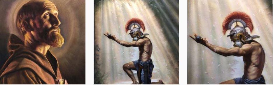 Antonio, che sul suo profilo Instagram ha un’incredibile galleria di soggetti moderni realizzati con tecniche antiche, ci racconta: “Ho iniziato a interessarmi all’arte col liceo artistico di via Ripetta nel 1996 a Roma. Ho avuto la fortuna di frequentare dal primo anno di liceo lo studio di pittura del maestro e storico dell’ arte Rodolfo Papa, che tutt’ oggi lavora per il Vaticano e si occupa di arte sacra, non che “Accademico dei virtuosi al Pantheon”.