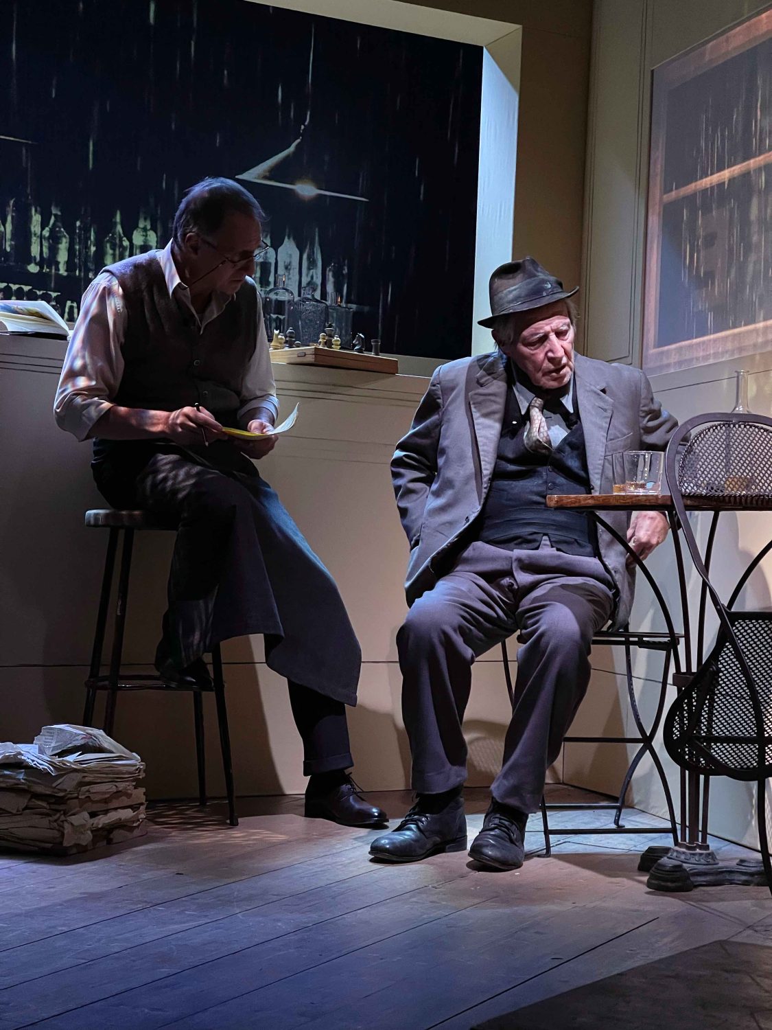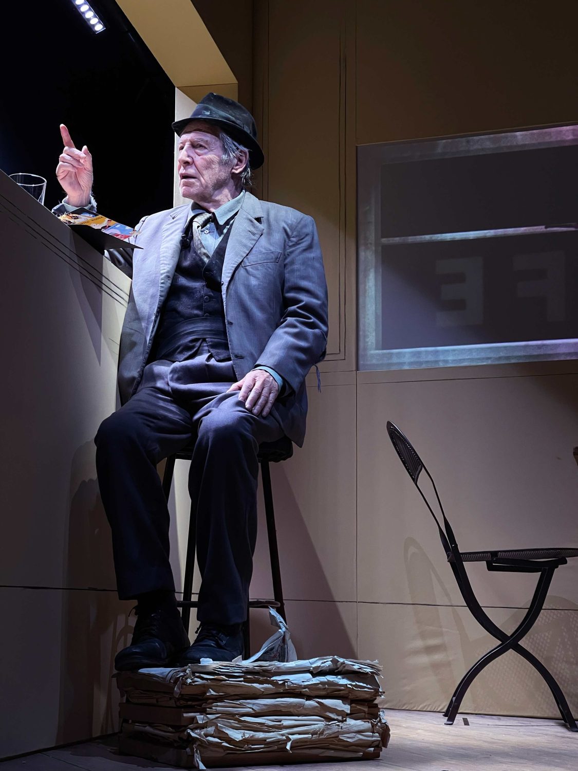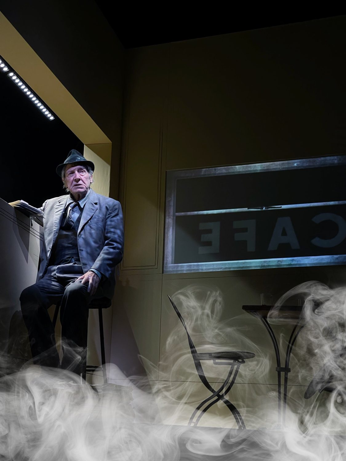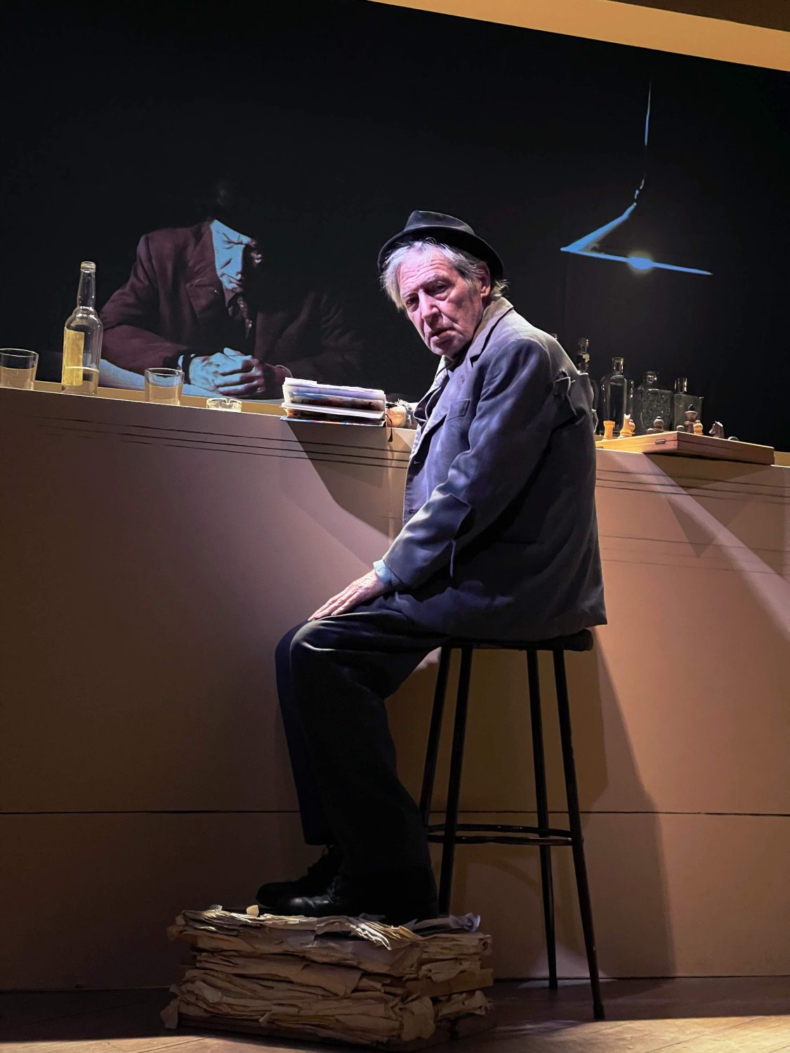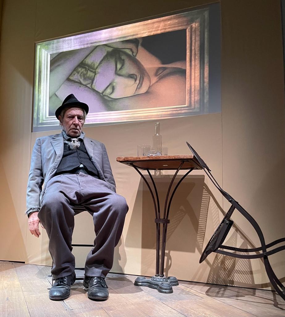 Nella doppia veste di narratore e personaggio, Carlo Cecchi, col suo inconfondibile eloquio da grande affabulatore, con la sua voce graffiata, il suo fisico apparentemente esile ma scattante e il suo fare dimesso, conferisce – fin dalle prime battute – forza e credibilità ad un personaggio enigmatico, pieno di luci e ombre. I suoi pregi (come il senso dell’onore e dell’amor proprio) e i difetti (il continuo abbandono all’alcool e a tutti i vizi alla cui forza attrattiva cede volentieri) vengono fuori attraverso voce, sguardi e gesti misurati che mettono in mostra tutte le qualità attoriali del grande interprete. Il continuo alternarsi del piano narrativo e di quello interpretativo crea un sofisticato gioco di immedesimazione/straniamento che movimenta l’azione e la rende fluida e ritmata. Anche lo spazio scenico disegnato da Gianmaurizio Fercioni con le suggestioni visive di Luca Scarzella e Vinicio Bordin, le luci di Marcello Jazzetti e i costumi di Barbara Petrecca contribuiscono non poco a ricreare un ambiente da bistrot parigino d’inizio Novecento in cui si muove il personaggio leggendario, creando un’atmosfera onirica che è la cifra registica della Shammah che sa sempre come far sognare lo spettatore, grazie alla magia del Teatro.
